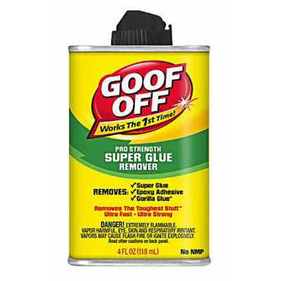 Super Glue SGR Remover (0.17oz/5g)Super Glue Remover is the easiest super glue and cured adhesive remover on the market. The brush applicator keeps your fingers clean while helping you apply the remover exactly where you want it to go. The gel formula does not drip or run. Simply apply it to the cured adhesive you want to remove, allow sufficient time for penetration and then begin rubbing, brushing or sanding off the softened adhesive.