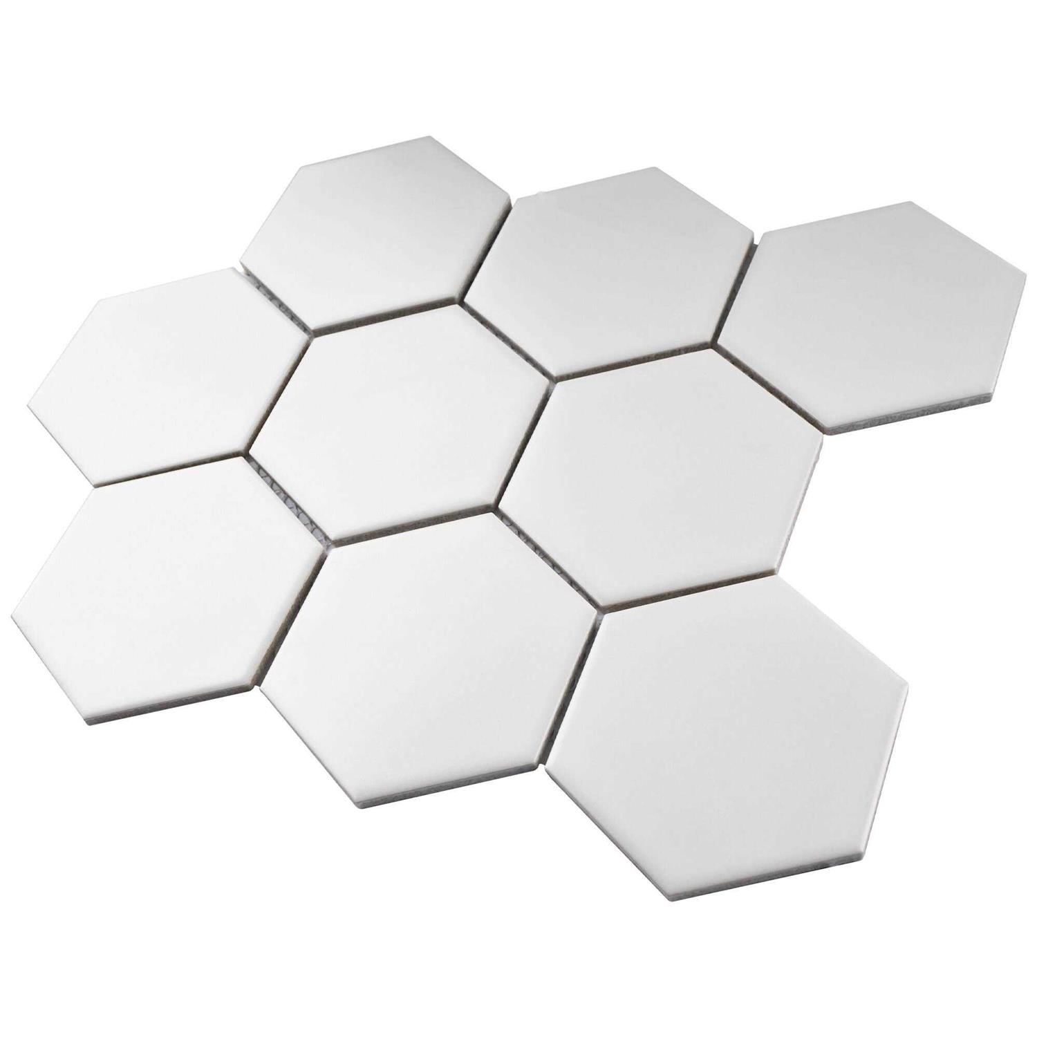 TileGen. 3.75″ x 3.75″ Hexagon Porcelain Tile in White Floor and Wall Tile (11 sheets/8.2sqft.)