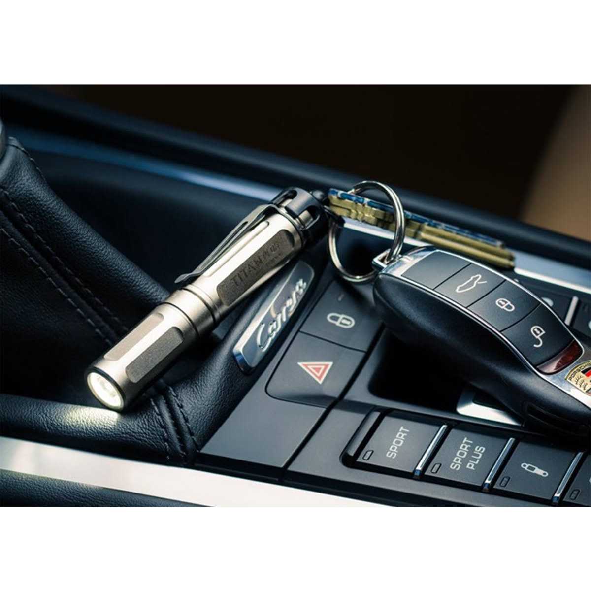 The refined, ultra-compact Titan Plus builds upon our groundbreaking Titan, the world’s first professional-grade keychain flashlight, by adding several useful “pluses,” including more than twice the maximum output–300 lumens of flawless white light! Its high-performance LED also generates two other useful light levels with a simple twist of the head switch: 75 lumens at its medium setting and 15 lumens on low. No matter which output level you select, our proprietary faceted reflector shapes the LED’s light into wide, smooth MaxVision Beam. And, because there are no intense hot spots and it’s optimized for your field of view, you see things clearly and maintain good situational awareness–crucial for closer-range tasks and safe navigation. Titan Plus may be small and stylish, but it is constructed of durable nickel-plated brass that resists scratching and corrosion. This rugged light features a removable pocket clip that provides countless secure-carry options, because you’ll want to take this light everywhere you go. Powered by its included AAA NiMH rechargeable battery, Titan Plus can run for up to seven hours before it needs a charge. Or, for added convenience when recharging isn’t an option, it can be powered by a single disposable AAA alkaline, readily available worldwide. Activating Titan Plus is as easy as twisting its head switch counterclockwise for low output. For medium output, simply return to off by rotating the switch clockwise, then counterclockwise again within one second. Repeat the process a third time to unleash all 300 lumens from its microprocessor-controlled LED.