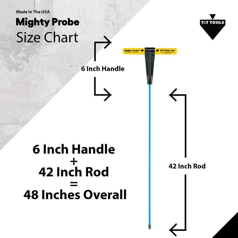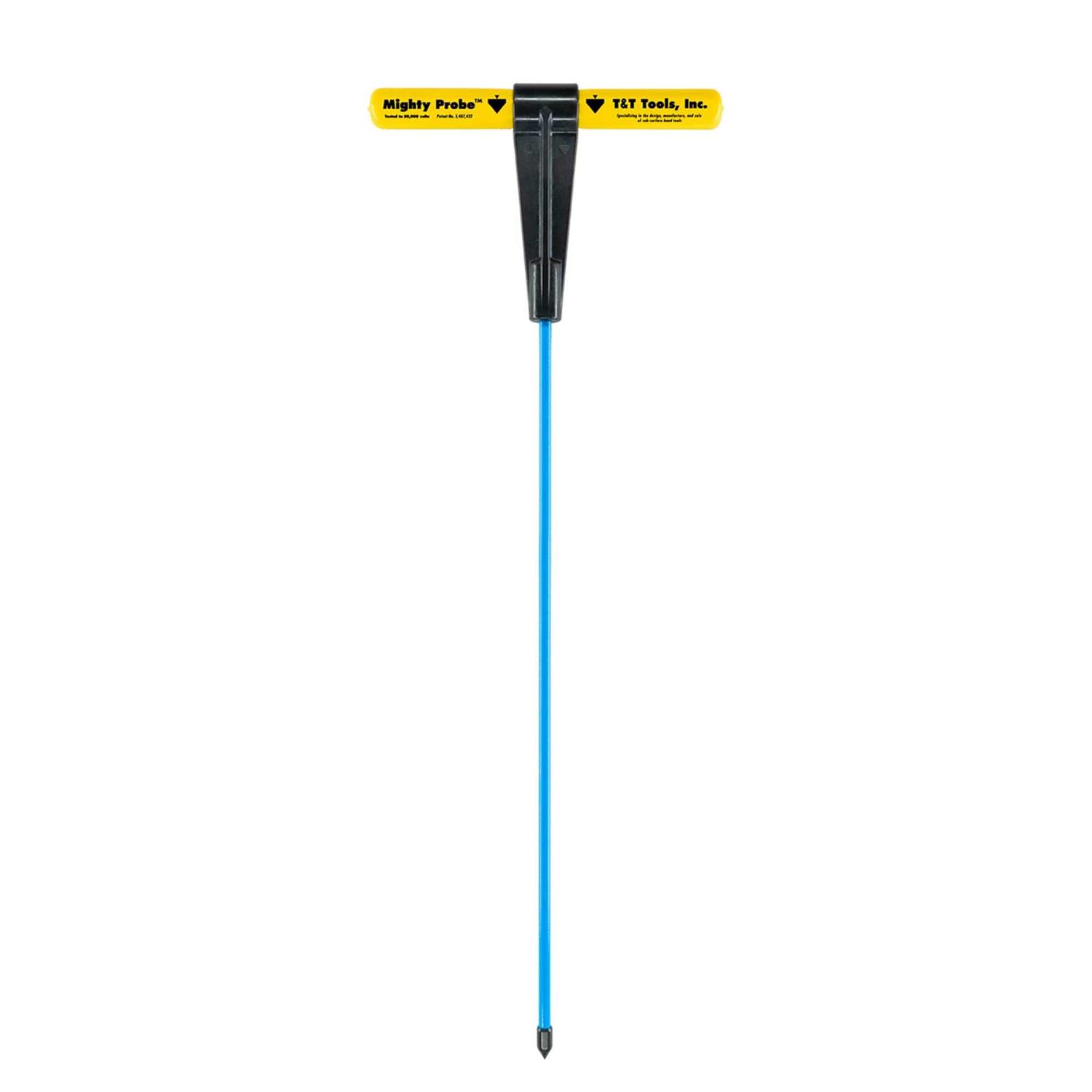 The T&T Tools Mighty Probe Insulated Metal Soil Probe provides a reliable tool you can count on every time you are out on a job site. It can be used to locate underground pipes or septic tanks. This sturdy soil probe is built with high quality alloy steel to resist bending and bowing. The Mighty Probe features a six-inch insulator to provide additional protection to the operator in case of incidental electric shock. It has been tested to work up to 50,000 volts. The Mighty Probe is proudly made in the USA.