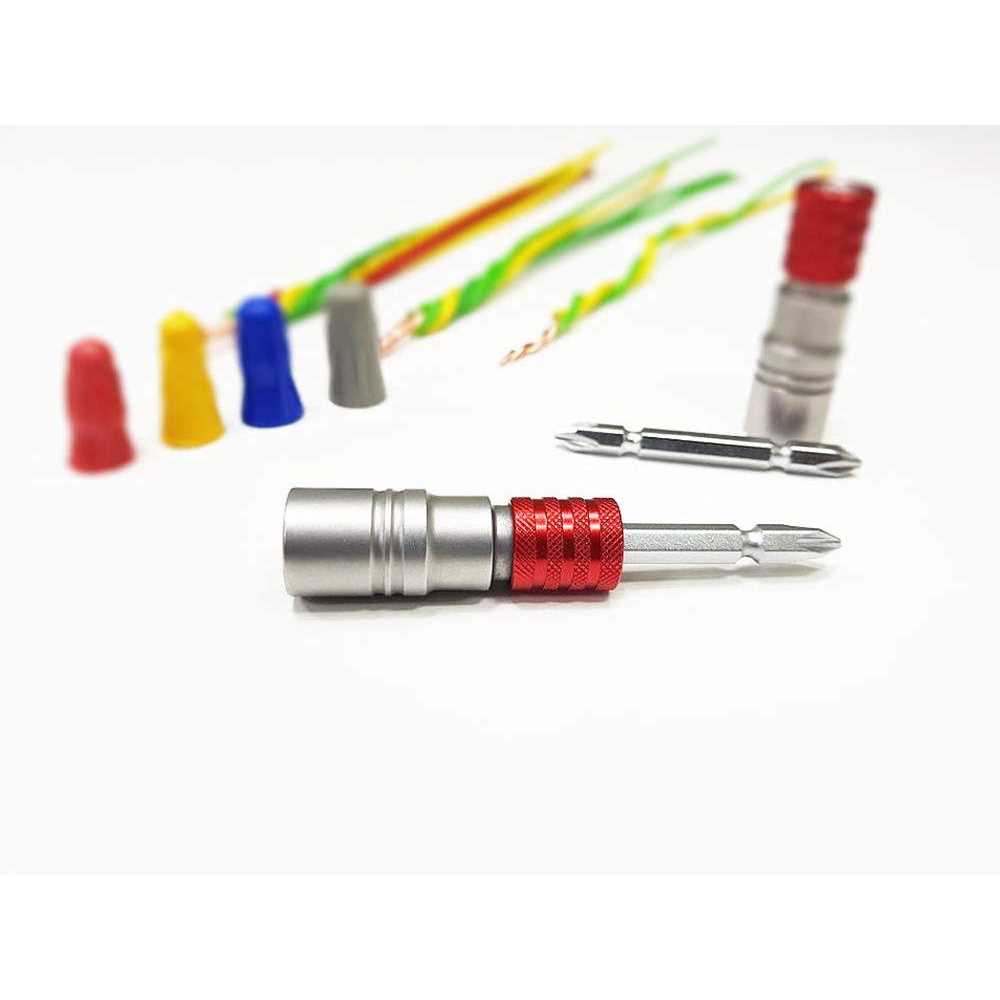 * A tool (using an electric drill) that twists multiple wires in an easy way * In the electric wiring construction, it is possible to finish the wiring work conveniently which has been done by hand. * In addition, it can be used with a wire connector, and enables a user to mount the connector through one-touch finishing job. * A spindle lock or a one-touch lock can be mounted into a power driver. This supports twisting for both positive and negative twist direction After twisting, easy separation (unwinding) of wires is available (the minimization of a hindrance phenomenon) * All electric drills can be installed and are easy to install.