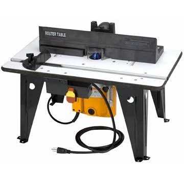 Powered by a heavy duty 1-3/4 HP plunge router, smooth, straight cuts, chamfers and coves are no problem with this sturdy router table. Features include a quick-stop electric brake and plastic guard for added safety and clear viewing of your work. This handy router table is dust collection ready.