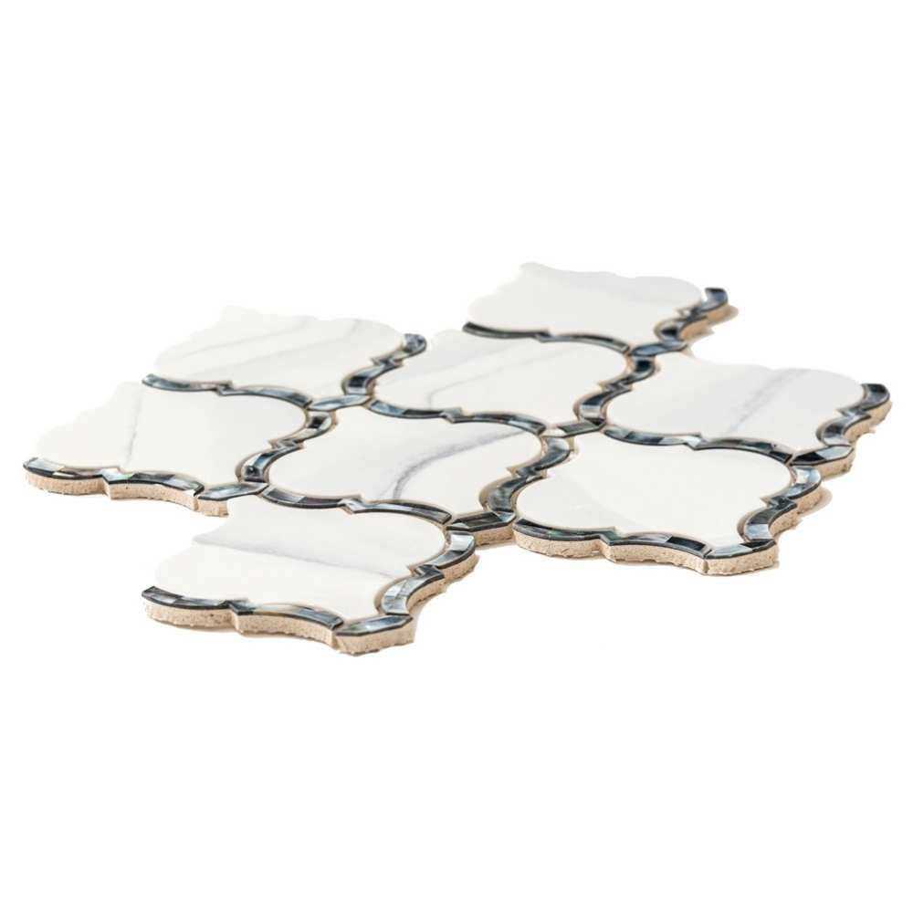 The Tile Life Tahitian Pearl 5×4.5 Arabesque Recycled Glass Mosaic Wall Tile leaves no space for the unfulfilled. This mosaic tile is available in a satin finish for a more modern look typical of precious glass tiles. Made and designed in Spain from a mix of pearl and glass, this mosaic will transform your space leaving your friends and family in awe. This glass tile is meant for backsplash, kitchen wall, shower wall, and fireplace surround application and is suitable for outdoor covered areas. The Tile Life’s Tahitian Pearl comes in Calacatta Gold and Statuario Silver.