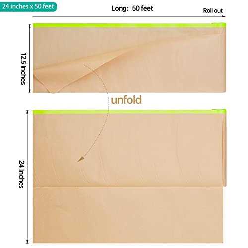 Pre-Taped Masking Paper for Painting – 24 inch x 50 Feet Tape and Drape Painters Paper, Paint Adhesive Protective Paper Roll for Covering Skirting,