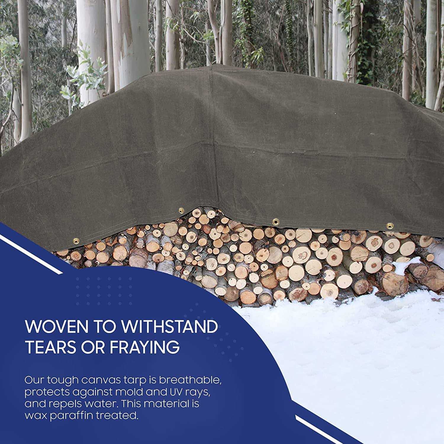 Tarps Now is presenting Flame Resistant Canvas Tarp for construction, agriculture, commercial and industrial applications. This 16oz Tarpaulin cover is breathable, preventing condensation entirely while protecting your supplies and equipment. Our canvas tarp is waxed paraffin treated to meet NFPA 701 and CPAI-84 fire safety regulations, and industry-standard quality. FIRE RETARDANT CANVAS TARP: Tarps Now canvas tarp is made of 100% single fill cotton that is breathable and provides long-lasting durability. WAXED PARAFIN TREATED: Our canvas tarp comes with waxed paraffin treated which means it is dry to the touch. PERFECT FOR ALL WEATHER: These canvas tarps are NFPA 701, CPAI-84 standard that is able to perform in all weather conditions. SIZE, THICKNESS AND WEIGHT: The size of this cover is 6′ X 8′ and the weight is 16 oz where the thickness is 18 Mil. The base fabric weight is 10 oz. Per Sq Yd and finished fabric weight is 16 oz. Per Sq Yd. RUSTPROOF GROMMETS: These tarp covers are crafted with rustproof brass grommets and spaced approx every 24 inch around the perimeter. Tarps Now industrial-grade heavy-duty Canvas tarps are UV, mildew, water, and fire-resistant. You can create a “tent” for camping, fairs, and more outdoor activities with our tarp cover sheet. Perfect for picnics or groundsheets, covering vehicles like cars, trucks, trailers, boats, agricultural materials, furniture, etc. Please Note: These tarps are cut size finishing approx. 6 to 8 inch smaller than shown size.