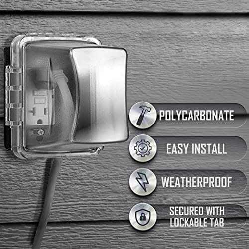 The TayMac weatherproof plastic in-use cover (16 in 1 ) jumbo horizontal/vertical configuration in clear MM710C safely covers any electrical outlet in seconds. The patented Multi-Mac features our Universal Fit system which enables you to use the same product for all types of receptacles. One Multi-Mac does it all. The cover fits horizontally and vertically. It is made up of a durable high-impact polycarbonate construction that resists breakage and corrosion. The quick fit patented key hole mount allows easy installation, along with the base configuration with it’s patented knock out technology allows for a custom fit. Simply snap out the knock-outs to fit your electrical outlet. One Multi-Mac gives you many configurations both vertically and horizontally. Included with this cover is an attached gasket and mounting hardware. The Multi-Mac meets or exceeds OSHA and NEC (article 406.8[b][1] wet location requirements with the cord plugged into the receptacle.