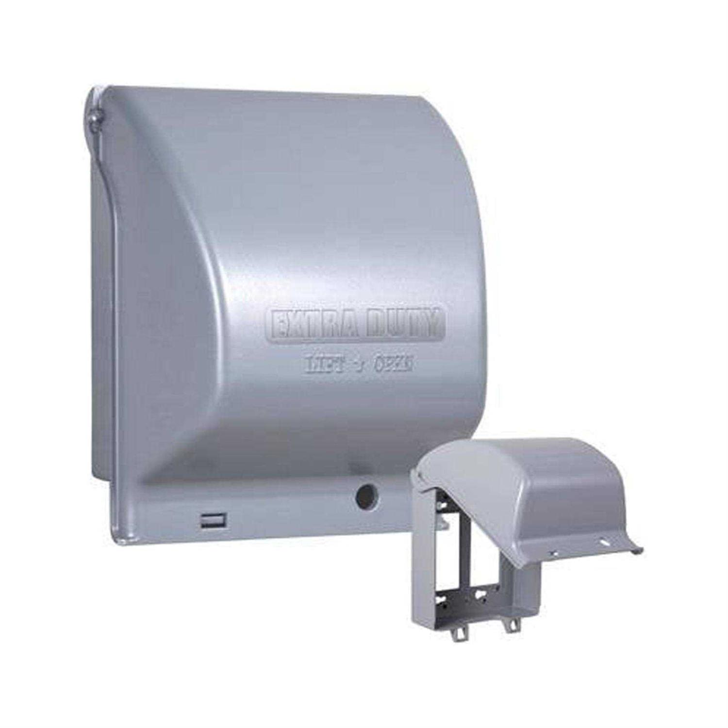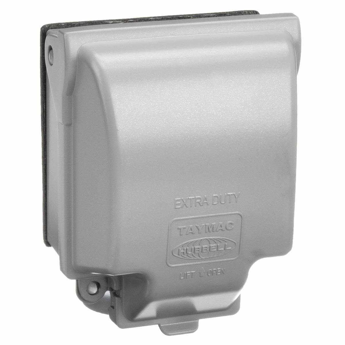 Taymac, gray, 2 gang, metal in use, 55 in 1, outlet cover, superior commercial quality die cast metal construction, patented quick fit keyhole mounting system & universal fit technology allows installation in under a minute, mounting hardware, gasket, & installation instructions included, meets or exceeds extra duty specifications, lockable tab, ul listed, 2011 nec compliant, nema 3r complaint. Additional discounts apply for this item when purchased as Bulk.
