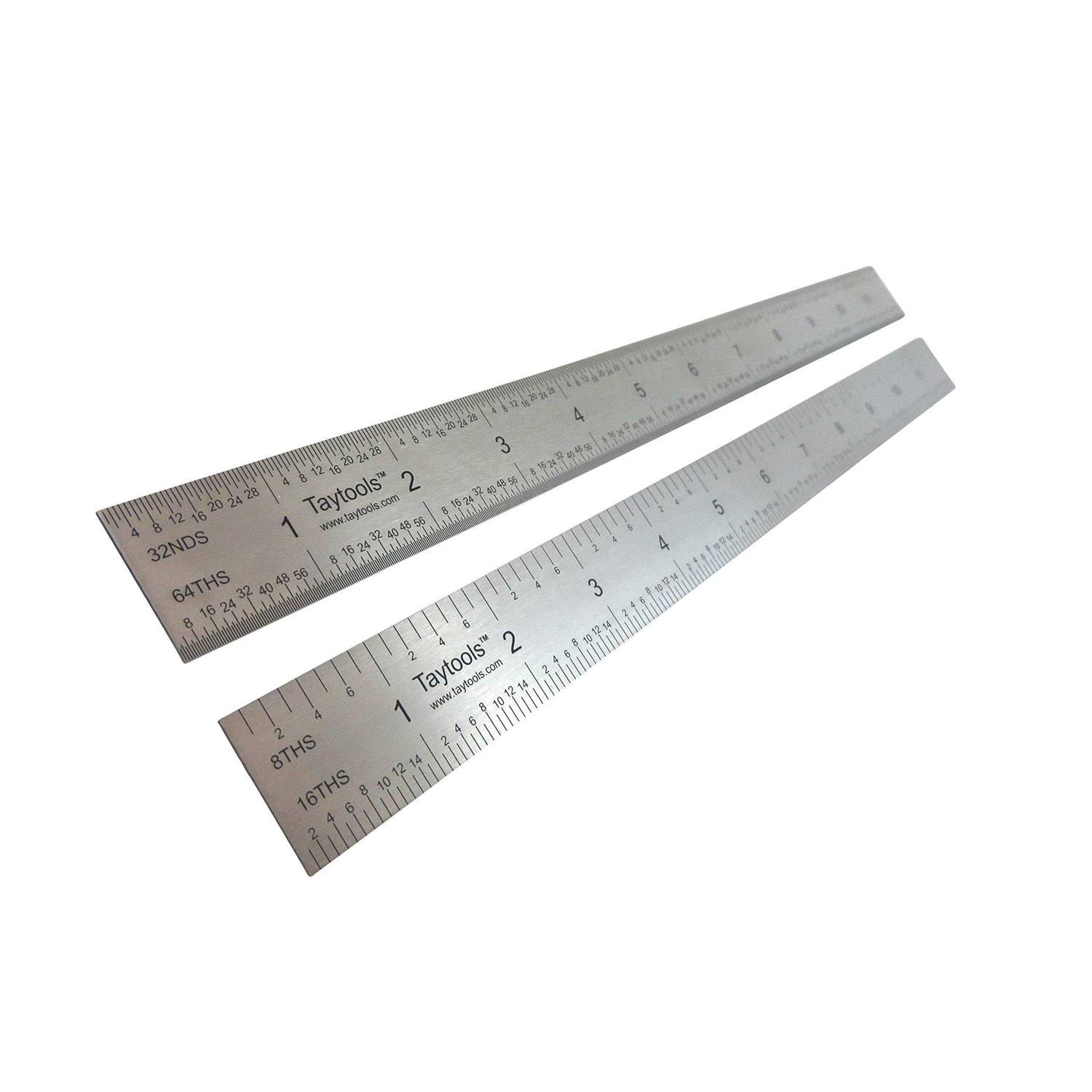 Taytools 12 inch Rigid Machinist Rule Ruler Hardened Spring Steel 4R Graduations in 1/8 inch, 1/16 inch, 1/32 inch and 1/64 inch Mrsae-12