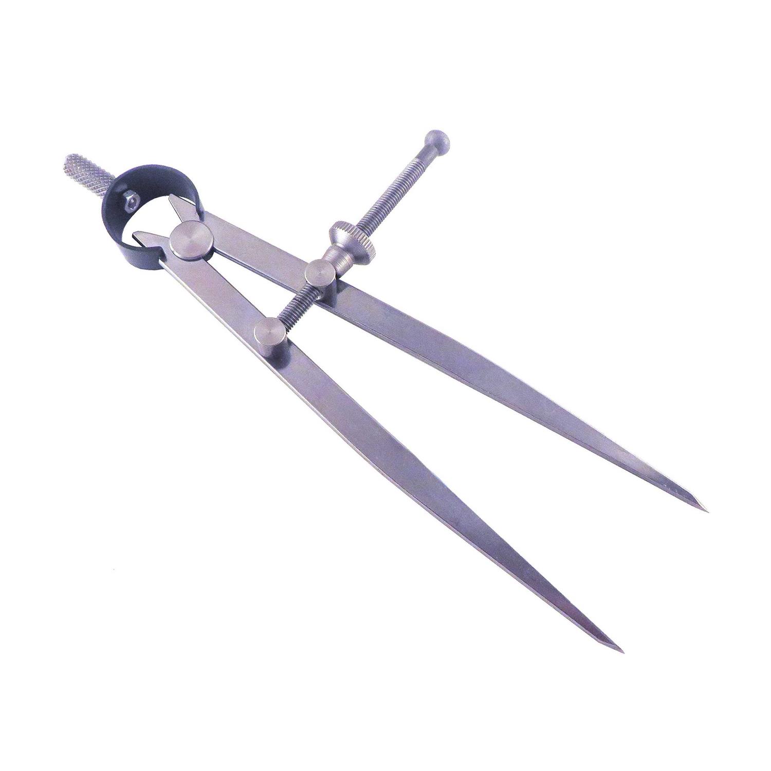 Can be used for measuring and transferring precise distances between two points and drawing arcs Made from carbon steel with hardened and finely ground points. Feature a substantial hardened spring fulcrum Maximum opening is 6.5″ / 160 mm Smooth running fine adjustment Dividers are used for measuring and transferring precise distances between two points and for drawing arcs and circles. Dividers are made from carbon steel with hardened and finely ground points. Dividers feature a substantial hardened spring fulcrum with a smooth running adjustment nut that is guaranteed to hold any setting. Maximum opening is 6.5″.