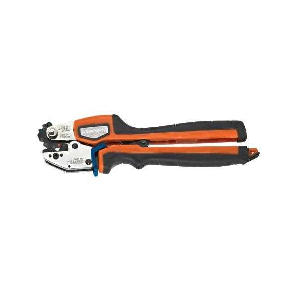 Requires two crimps per connector Crimping tooling functionality The Thomas and Betts TBM45S is a mechanical compression crimping tool that crimps the wide range of 8 to 2 for copper lugs and 10 to 6 for aluminum lugs. The Shure Stake mechanism ensures a properly completed crimp each time. The color coated die wheel rotates into position for a proper dies nest while creating a diamond style crimp. The overloaded soft grip forms to any hand comfortably creating little to know slip while creating a crimp. Since 1930, Thomas and Betts has been supplying tools, dies and connectors. Today with more than 75 years’ experience in tools, dies and connectors, Thomas and Betts still sets the standard for innovation, quality and performance for application tooling. Rely on Thomas and Betts for labor saving features, user comfort and convenience, long service life and extraordinary value.