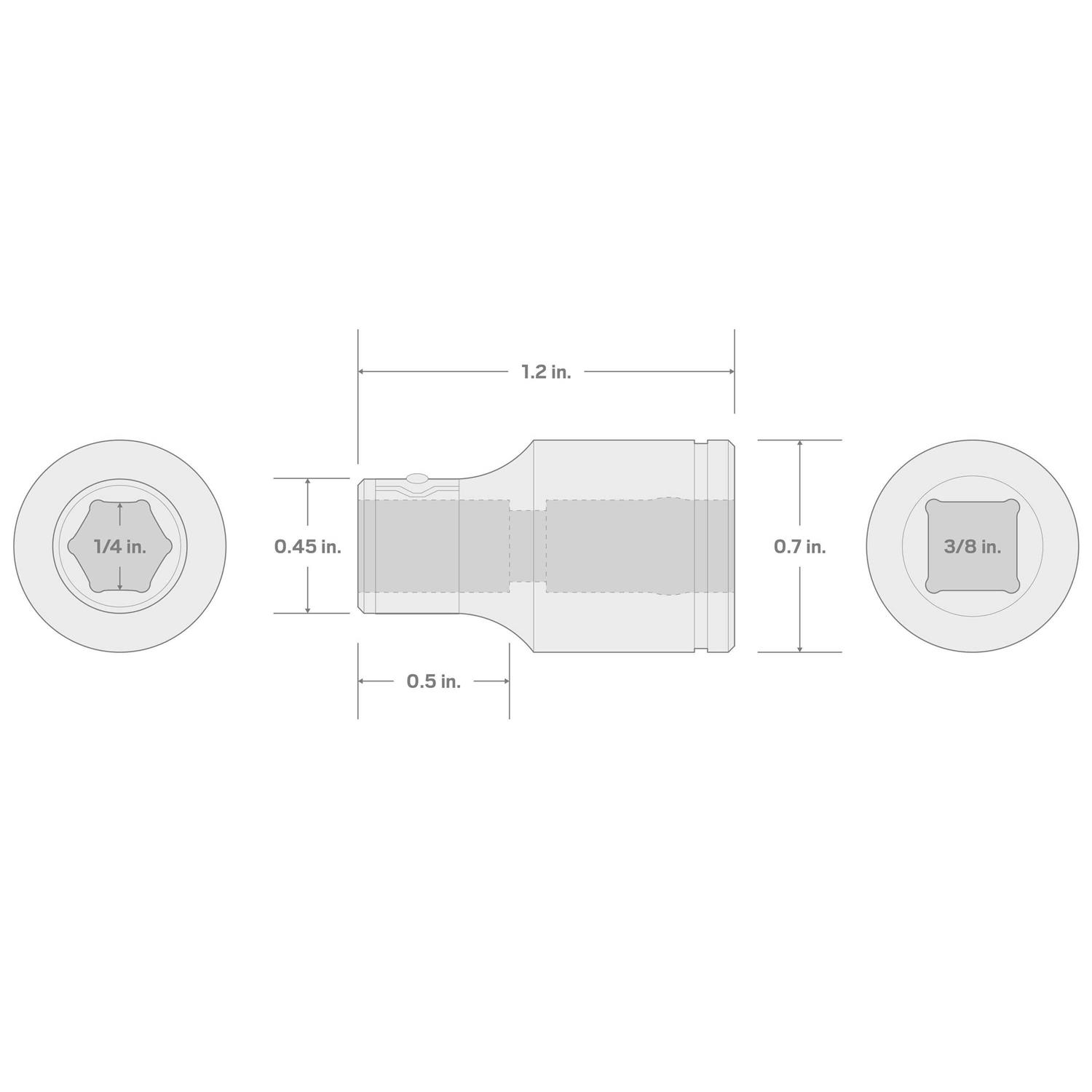 • Hex bit holder adapts any 1/4 inch hex shank bit to 3/8 inch drive ratchets, driver handles, and other drive tools