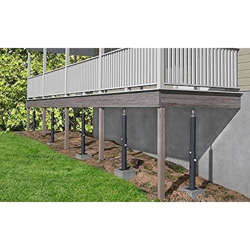 Compression Load Range* 18,000 lbs. Premium quality heavy duty high carbon steel Finished with corrosion-resistant powder (exceeds ASTM-B117-85) Adjustable, easy to assemble, easy to install Double locked for added safety For temporary or additional support under stairs, porches, decks, crawl spaces and heavy load areas.Perfect for remodeling projects. Fully adjustable jack posts come with double carriage nut and bolt for added strength and safety. All moving parts fit snugly to avoid lateral displacement, and the top and bottom plates are deeply embossed to mitigate movement and prevent dishing. *Compression load range is testing to the point of failure. Maximum loads are obtained at minimum extension. To determine safe or allowable loads, consult a licensed engineer.