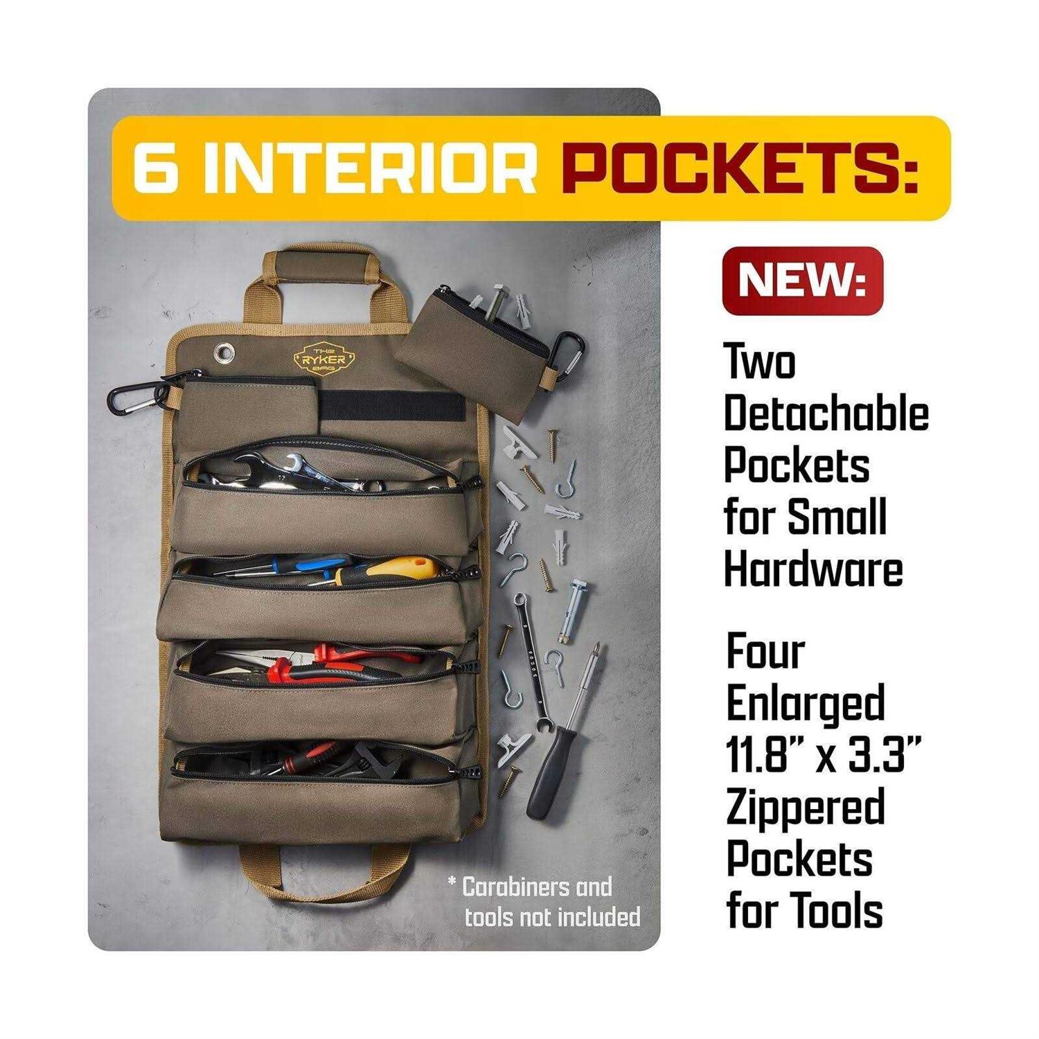 The Ryker Bag Tool Organizers Small Tool Bag W/Detachable Pouches Heavy Duty Roll Up Tool Bag Organizer