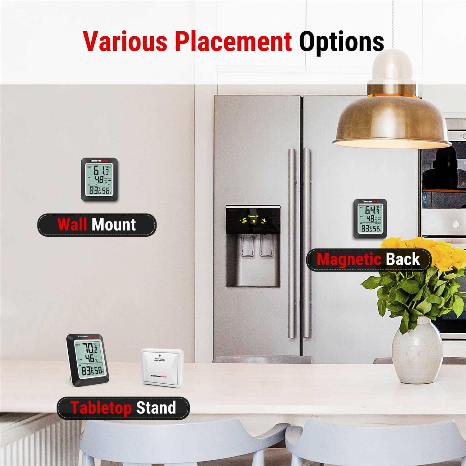 The TP60W digital thermometer hygrometer to help monitor your surroundings to ensure proper room humidity control as it has important skin, allergen and other health benefits. Helping you stay comfortable and live a healthier life. The ThermoPro Digital Hygrometer is equipped with industrial grade sensors making it the ideal solution to get the most accurate measurements of your surrounding.