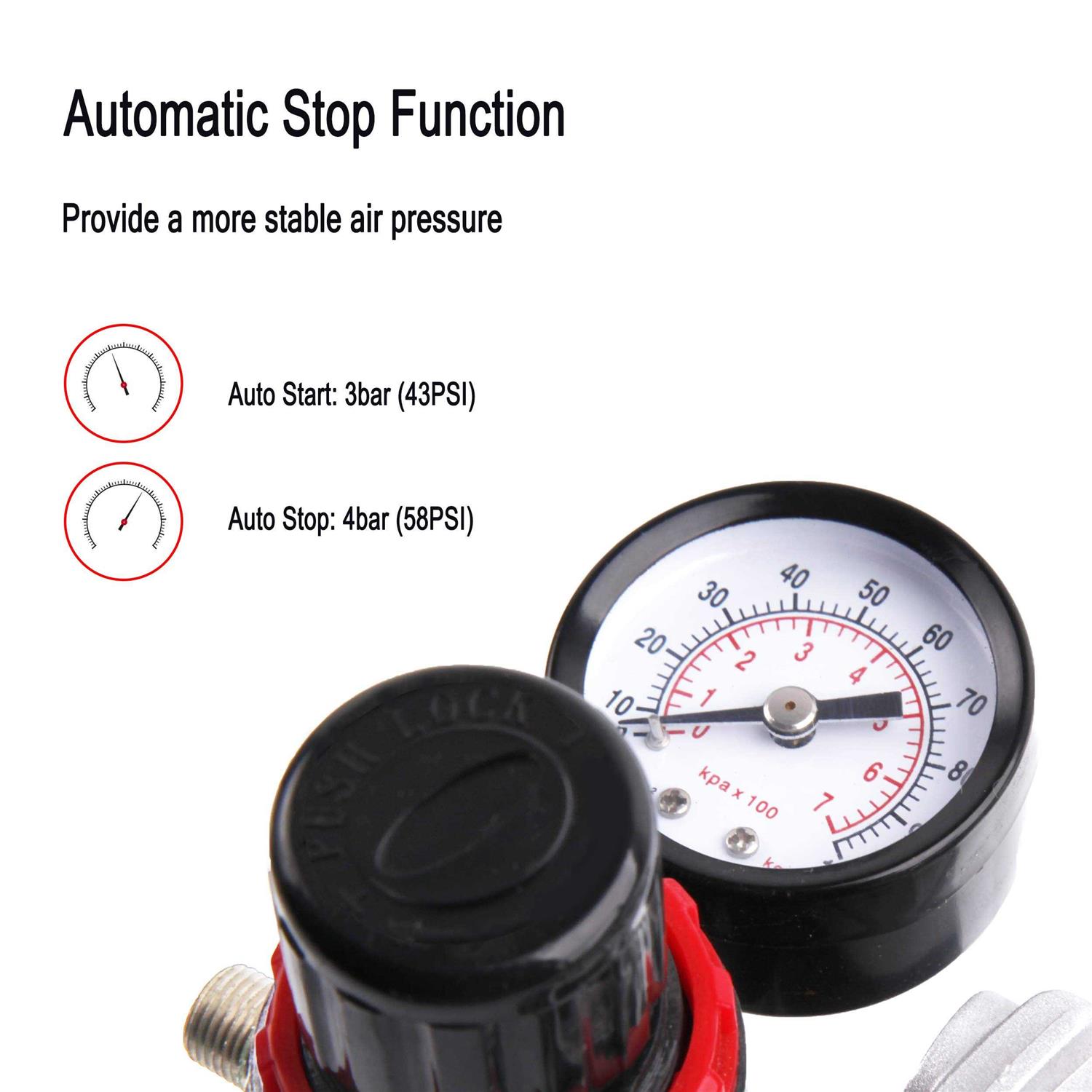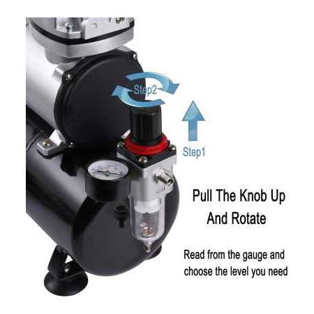 - The compressor is autostart(3Bar)-autostop(4Bar), suitable for all airbrush guns with 0.2 to 0.8 mm nozzles (not included)