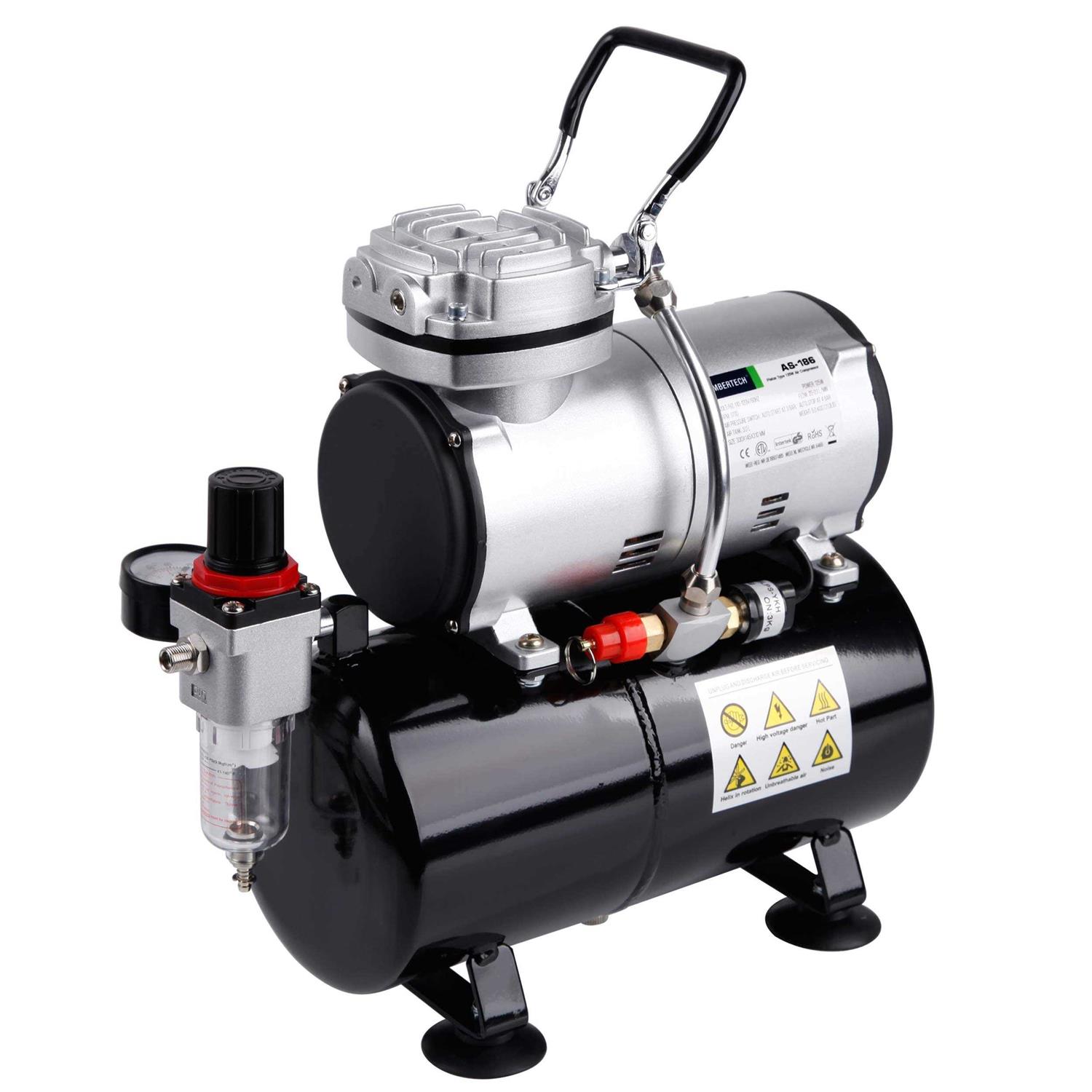 Timbertech Airbrush Compressor High-performance Single-Piston Oil-free Mini Compressor AS186 with 3L Tank