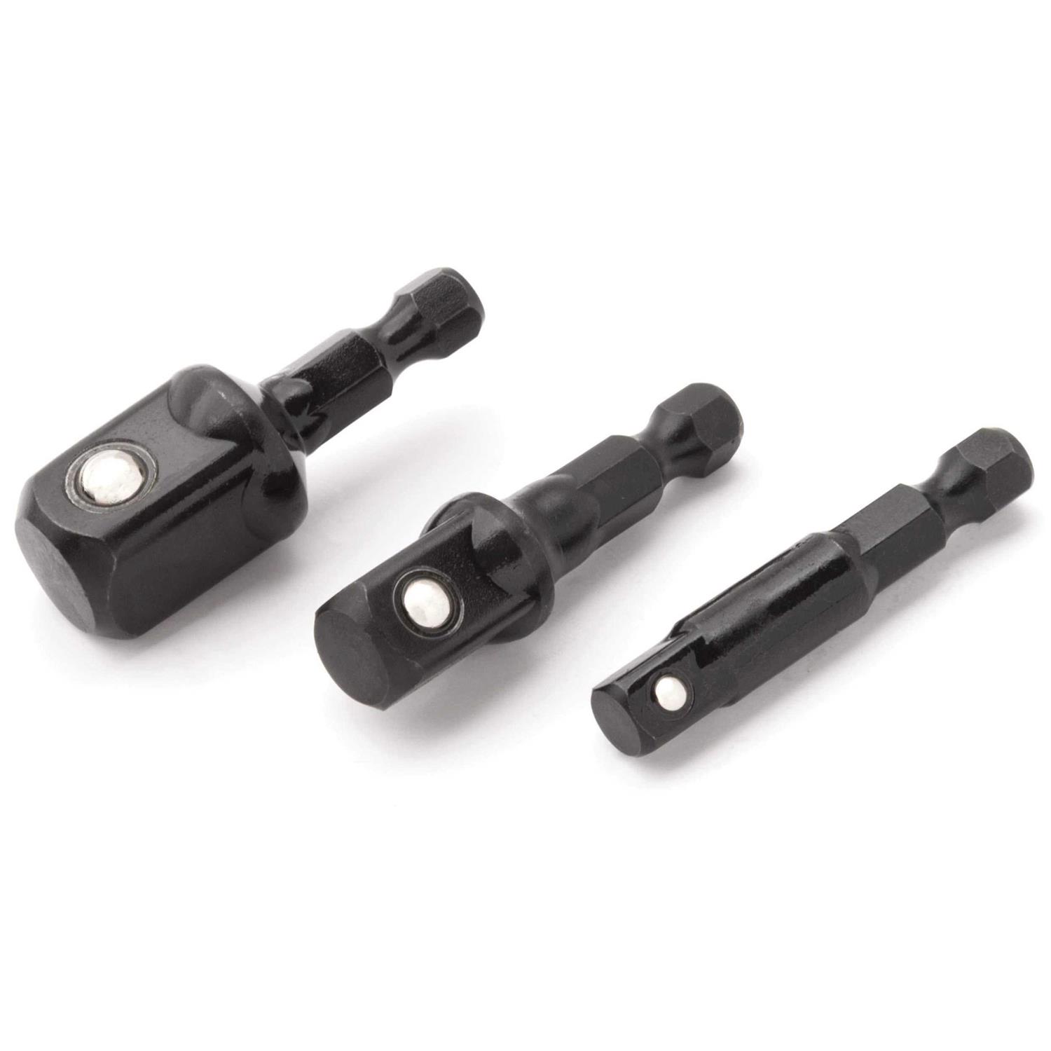 - Set contents: (1) 1/4-Inch, (1) 3/8-Inch, and (1) 1/2-Inch drive impact grade socket adapters