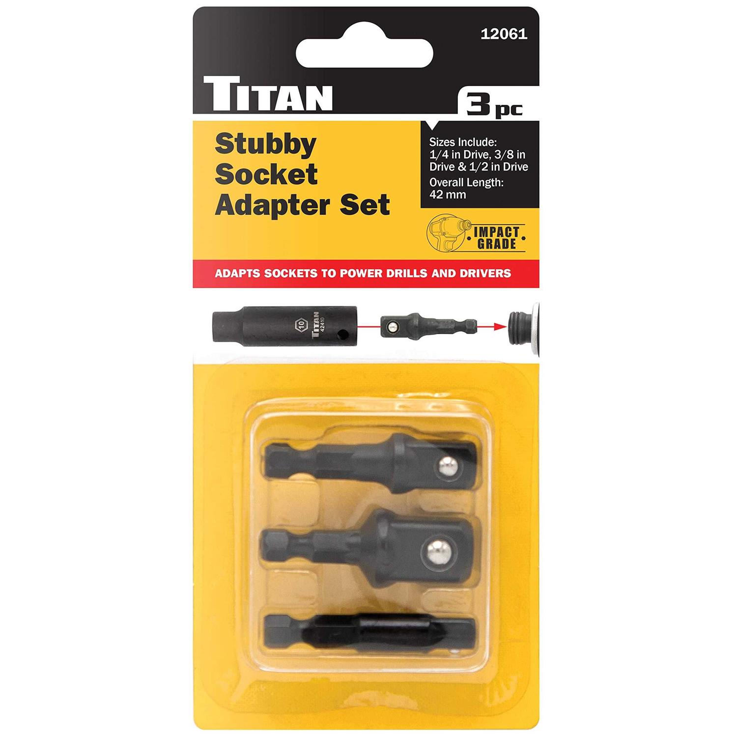 Titan 12061 3 Piece Impact Stubby Socket Adapter Set