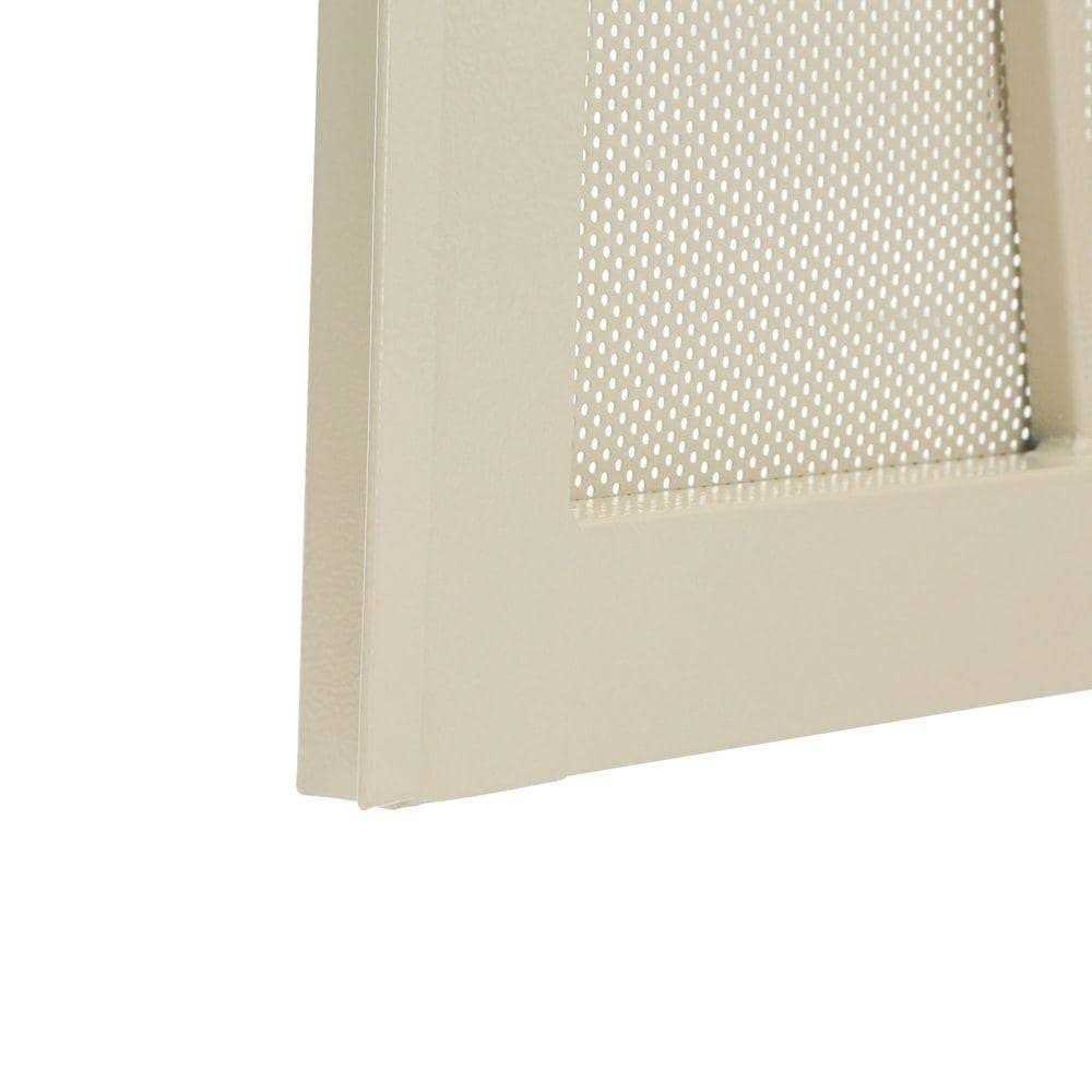The heavy-duty 2 in. x 1 in. thick steel frame offers excellent forced-entry deterrence, enhanced by a galvanized, perforated metal screen. The protective powder-coat finish and elegant design complement a variety of home styles. A 2-3/8 in. lockset opening accommodates most back-set locksets (sold separately). The door can be mounted either left or right-hinged to an existing door trim surface. Color: Navajo White.