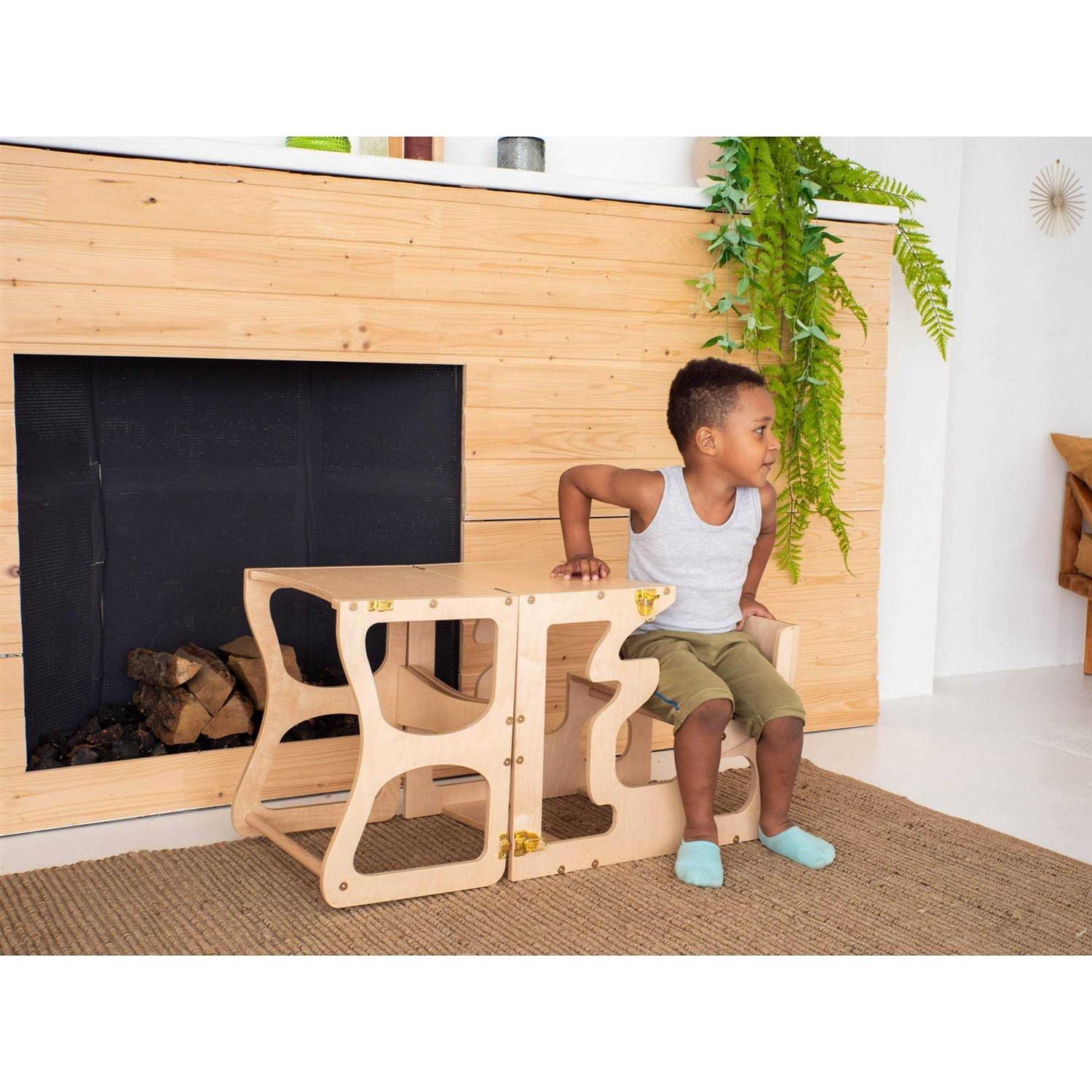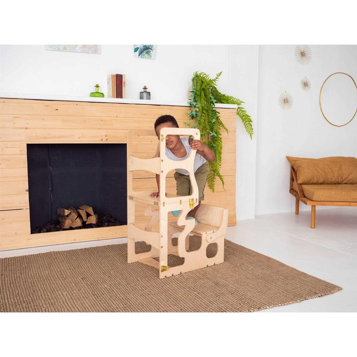 - Montessori toddler wooden tower is a multifunctional stool that can be used as a helper in the kitchen or for any other activity for kids.