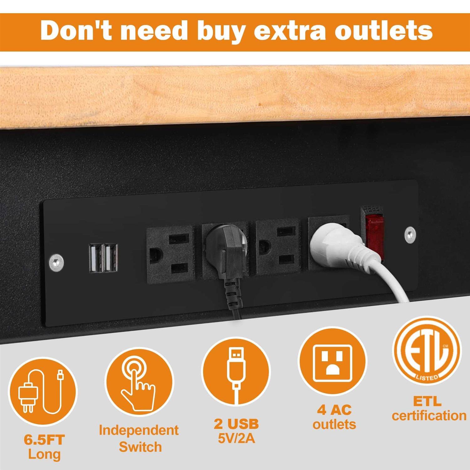 Tolead 60 inch Heavy-Duty Adjustable Workbench with Power Outlets