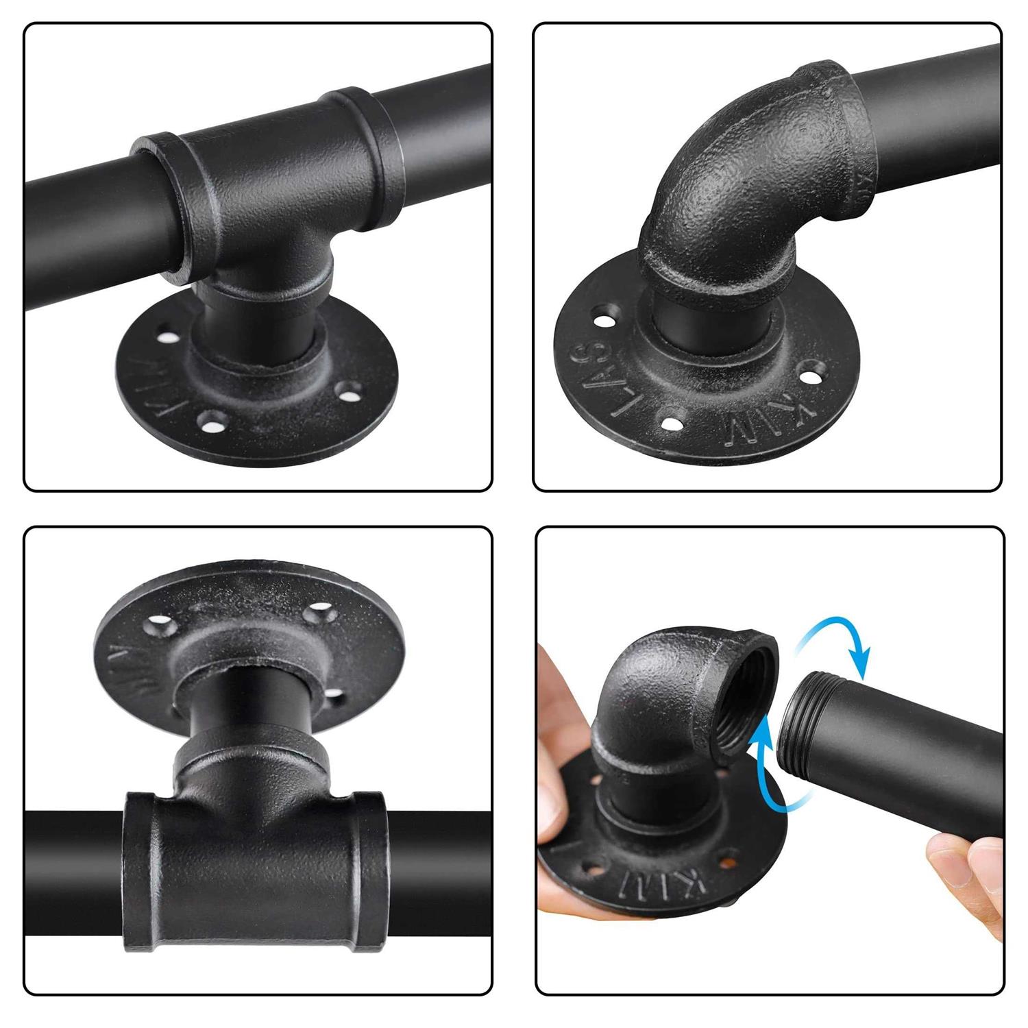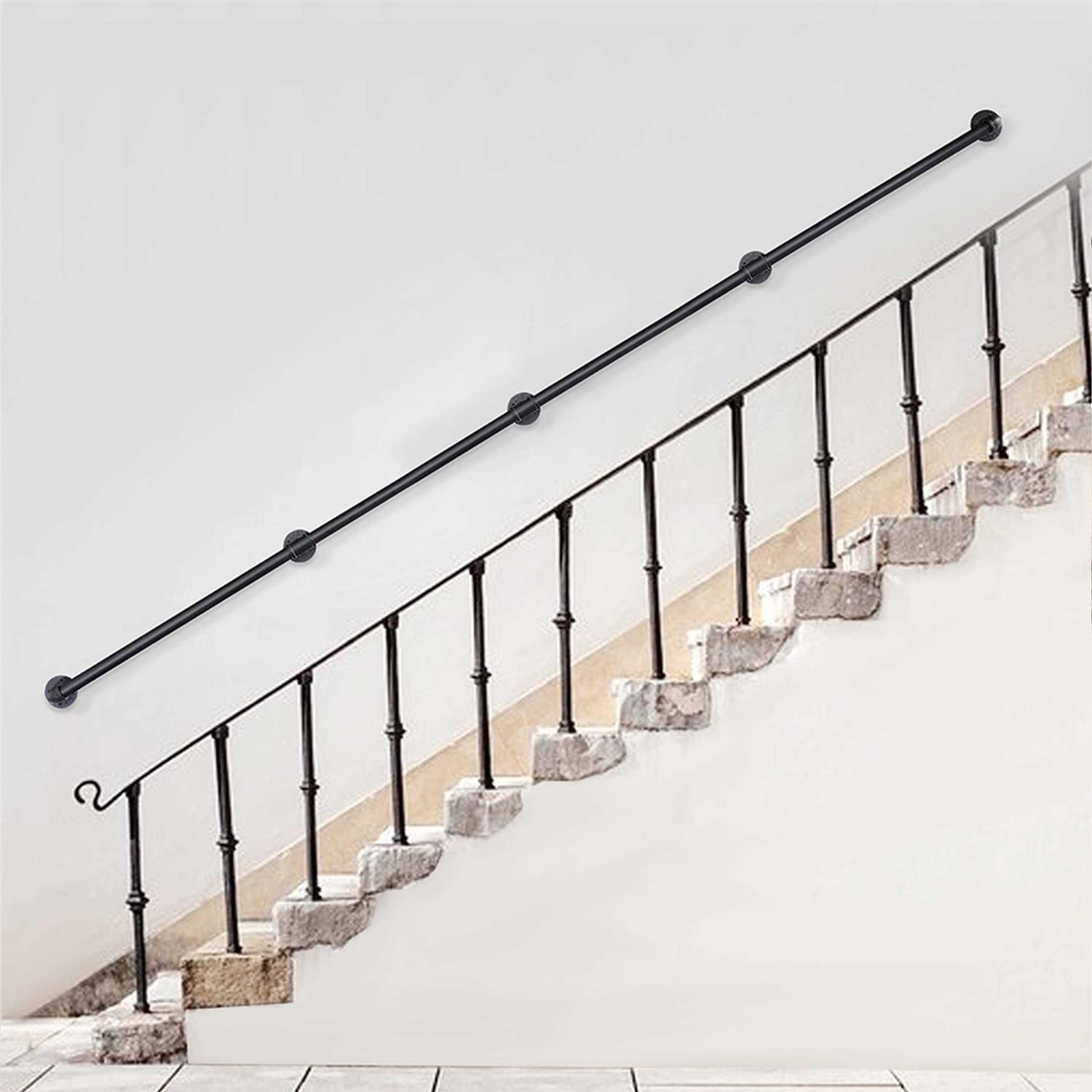 【Main Parameter】: Length: 12ft; Distance to the wall: about 2.75 inches. (Including both ends brackets and sufficient expansion screws.) 【Safety and Stability】: Galvanized steel with a corrosion-resistant coated surface make the pipe handrails last for long time. This armrest fixes the three bases to the wall with hex head expansion screws to provides safer protection for your family in the interior staircase. 【Easy Installation】: These water pipe handrails could be screw into the wall mounts and fixed with expansion screws on wood, vinyl, brick, stucco or concrete wall. 【Industrial-Style Design】: Powder-coated design is excellent for DIY an industrial cool look handrails on your staircase. Please measure the length of the handrail you need accurately before installation. 【Multi-function】: Perfect for stairs and lofts attic railing armrest, bathroom handrail and door handle, indoors and outdoor fence. p Introduction /b – Do you find it difficult to walk up the steep, slippery or inconvenient steps in your home or porch stair? The industrial iron pipe are well supported on the stairs or steps. It is a reliable help for children, elderly and people who have difficulty walking up steep or slippery steps. – Key Features /b – Sturdy Structure: High-quality iron material with powder coated, smooth surface for a comfortable touch. – Diverse Design: These handrails are designed with unique industrial design, classic black design, with Loft style. The satin black coated, easy to match your room decor. – Fast Installation: The staircase handrails can be installed horizontal, inclined or vertical for your needs. With expansion screws, the handrails can be installed on wood, brick, concrete or stucco wall. – Wall Mounted Bannister: As a horizontal, inclined or vertical balustrade. Suitable for DIY installation, affordable decking railings (Including both ends brackets and sufficient expansion screws). – Wide Application: The hand rail can be used in various occasions such as curtain rod, door handles, guardrail, bar counter foot railing, stair handrails etc. – Specifications: /b – Colour: Black – Material: Iron Galvanized Pipe – Length: 12ft – Distance to the wall: 2.75” – Chassis Diameter: 3.35” – Tube Diameter:1.3” – Package Content /b – Long tube:4PCS – Short tube: 5PCS – Flange: 5PCS – Elbow: 2PCS – Tee: 3PCS – Long screws and rubber plugs: 20PCS /p