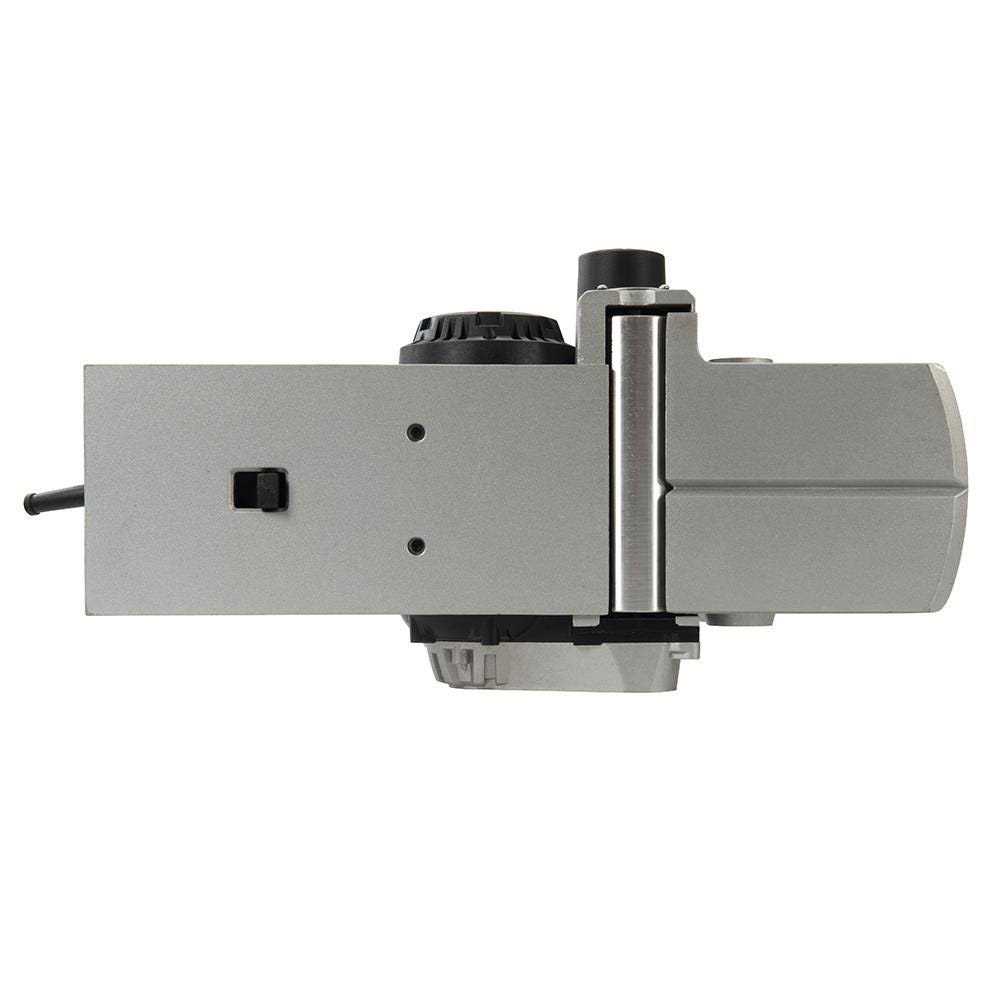 Patented, 3-blade design and 10-position depth control knob for precise material removal. Adjustable front handle with soft grip for added comfort. Power indicator with live mains connection, ultra-wide 7 In. planing width. Includes wrench, dust connector, set guide fence and 3 x HSS 180 mm blades. Cutting capacities: width 180 mm, depth 2mm. No load speed 15000 Rpm. Weight 8.6 kg.