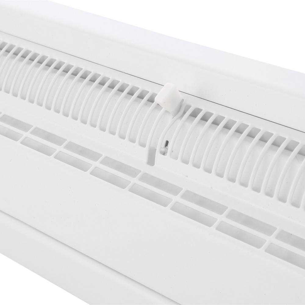 This 48″ baseboard diffuser is made of durable white stamped steel. Your new heat register vent offers a low profile design to blend seamlessly with your decorating style. The 48″ baseboard diffuser has a steel damper to control the air flow. These heat register vents offer a great look with a price to match! The 48″ baseboard diffuser has a hole opening of 24″ inches centered on the bottom. Installation for your heat register vent is easy simple, just use any drywall screws. Your 48″ baseboard diffuser can be used for both heating and cooling needs. Measures 48 inches in length x x 4 1/2 inches in height 2 3/4 inches in base projection.