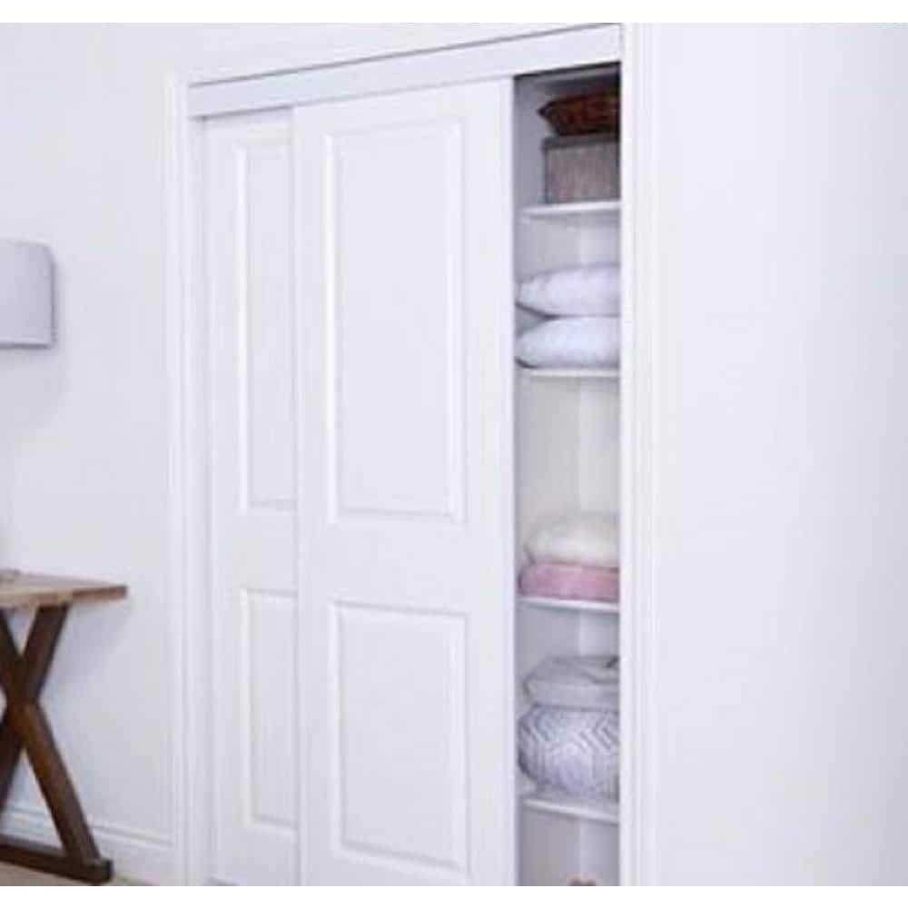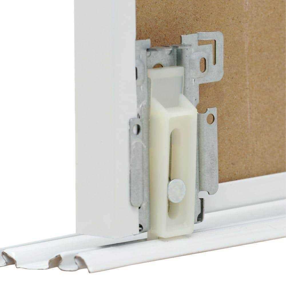 The Model 108 features primed ready-to-finish flush inserts in a raised 2-panel square top design. These doors are encased in a sleek frame with integrated ergonomic handle. This doorsystem can be used as is or add your own color. These steel sliding bypass doors are constructed of hardboard and operate as a top roll system featuring Easy-Hang hardware, Quick-Click Anti-Jump Bottom Connectors and Invisi-Track System.