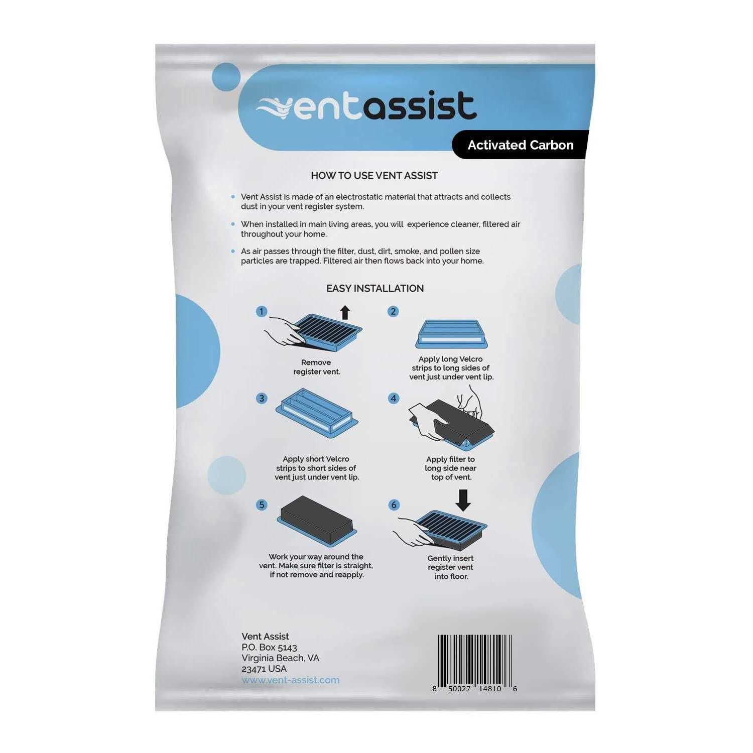 The Vent Assist Floor Register Trap and Vent Filter Combo provides 360 degrees of coverage that helps control dust, dirt, smoke, pollen and allergens in the home. Our air filters are made of a heavy density premium filtration electrostatic material that attracts and collects dust in your vent register system. When installed in main living areas, you will experience cleaner, filtered air throughout your home. As air passes through the filter, dust, dirt, smoke, allergens and pollen size particles are trapped. Filtered air then flows back into your home. Our air filters come precut. No trimming required. Enjoy fresh filtered air with Vent Assist.