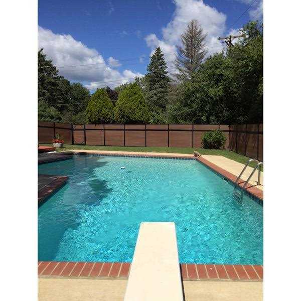 Estate King Cedar Euro Style Composite/Aluminum Fencing delivers the beauty of wood without the maintenance of wood. Used in conjunction with black aluminum framing and accents (sold separately), this mixed material fencing is extremely low maintenance and retains its beauty for many years. Its all-purpose channel posts (sold separately) and board stacking simplicity makes it the easiest fence of all to install. Use as in-ground fencing in your yard, or create an attractive privacy alcove by surface mounting on your patio or deck (under 30 in. deck surface height).