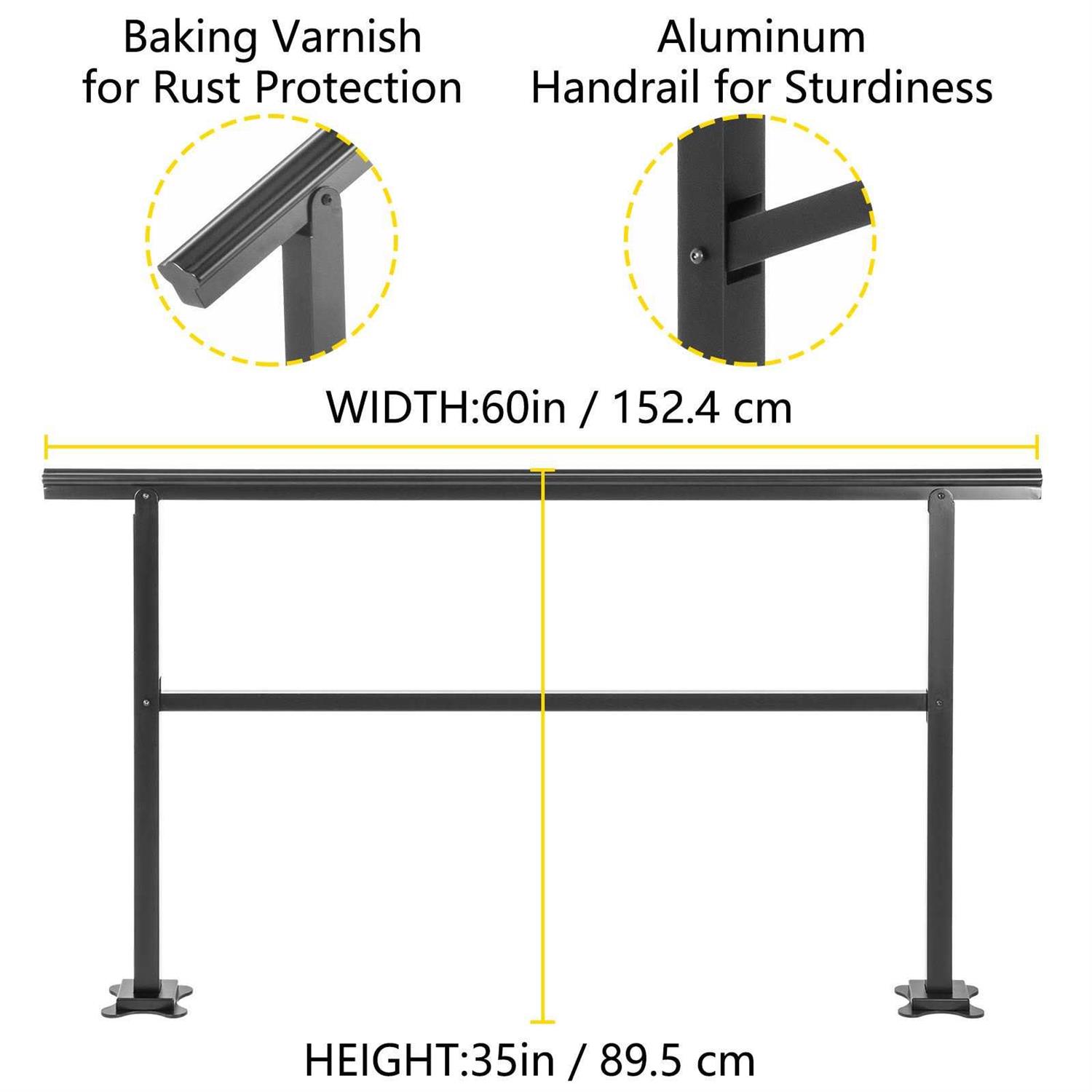 VEVOR 3/5ft Handrail Outdoor Stairs Outdoor Handrail Aluminum w/ Screws