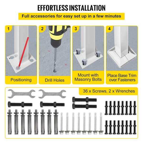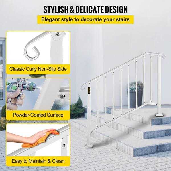 VEVOR 3 ft. Handrails for Outdoor Steps Fit 3 or 4 Steps Outdoor Stair Railing Wrought Iron Handrail with Baluster, White