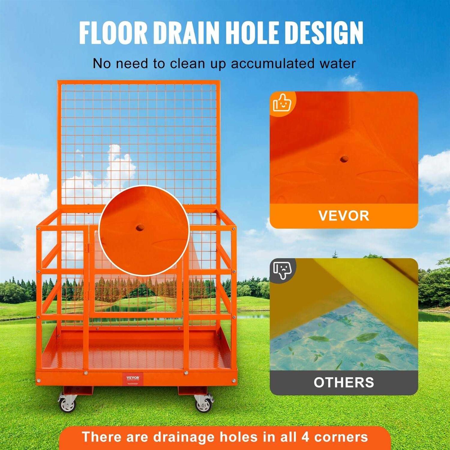 VEVOR forklift safety cage can bear 1200 lbs. and carry 1-people to 2-people simultaneously. It is suitable for any standard forklift or pallet loader and is the best helper for aerial work.