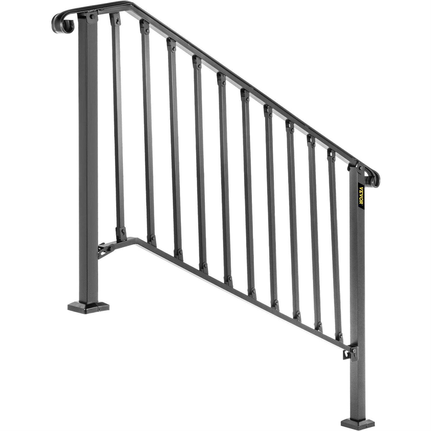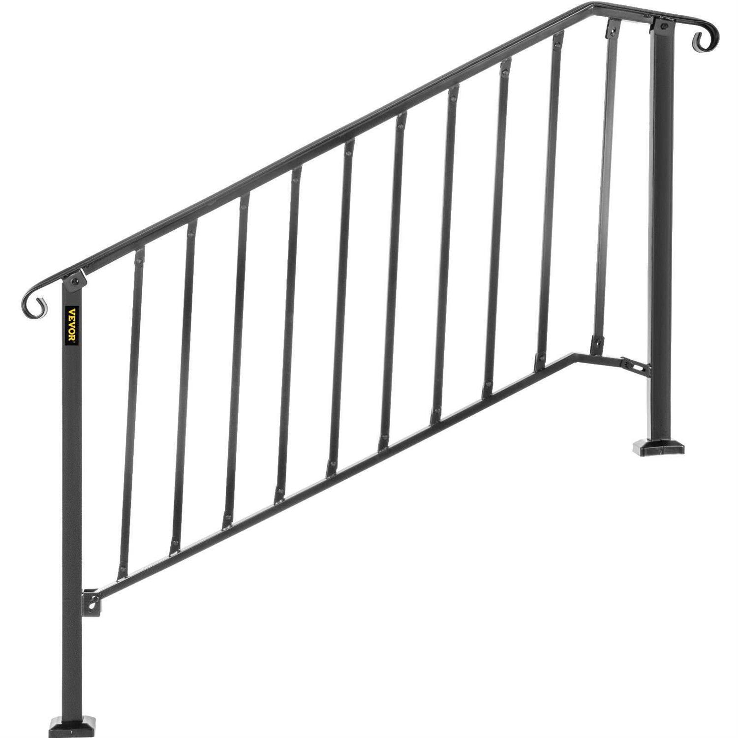 VEVOR 4 ft. Handrails for Outdoor Steps Fit 4 or 5 Steps Outdoor Stair Railing Wrought Iron Handrail with baluster LTFS4H5BHSTL00001V0