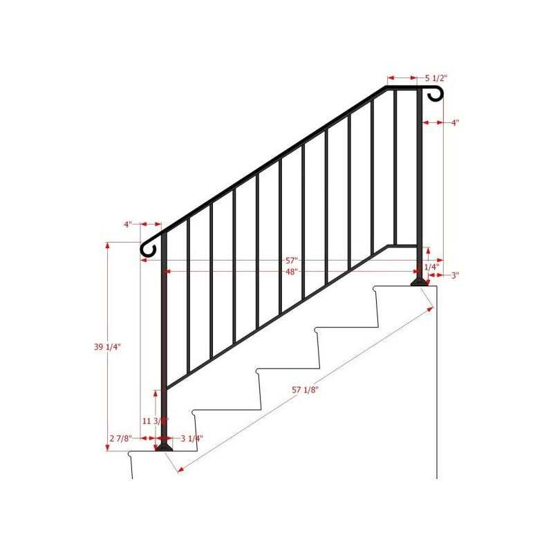 4-5 Steps Wrought Iron Handrail: Our outdoor stair railing for concrete provides extra protection for the elderly, children, and disabled struggling to use stairs; The flexible height allows the exterior handrail for steps to fit 4 or 5 stairs, meeting your different needs; With sturdy wrought iron material and powder-coated surface, the railing is rustproof and easy to clean; This metal handrail for outdoor steps is ideal for gardens, residential buildings, porches, hotels, etc; Flexible for 4 or 5 Steps; Sturdy Wrought Iron; Effortless Installation; Stylish and Delicate Design; [Package Content] 1 x Handrail; 20 x M6 Bolts; 4 x M8 Bolts; 8 x Self-Tapping Screws; 8 x Expansion Screws; 2 x Open-Ended Spanners; 44 x Gaskets VEVOR Handrails Stair Railing 56-in x 2.4-in x 38.5-in Black Steel Deck Stair Rail Kit | LTFS4H5BHSTL00001V0
