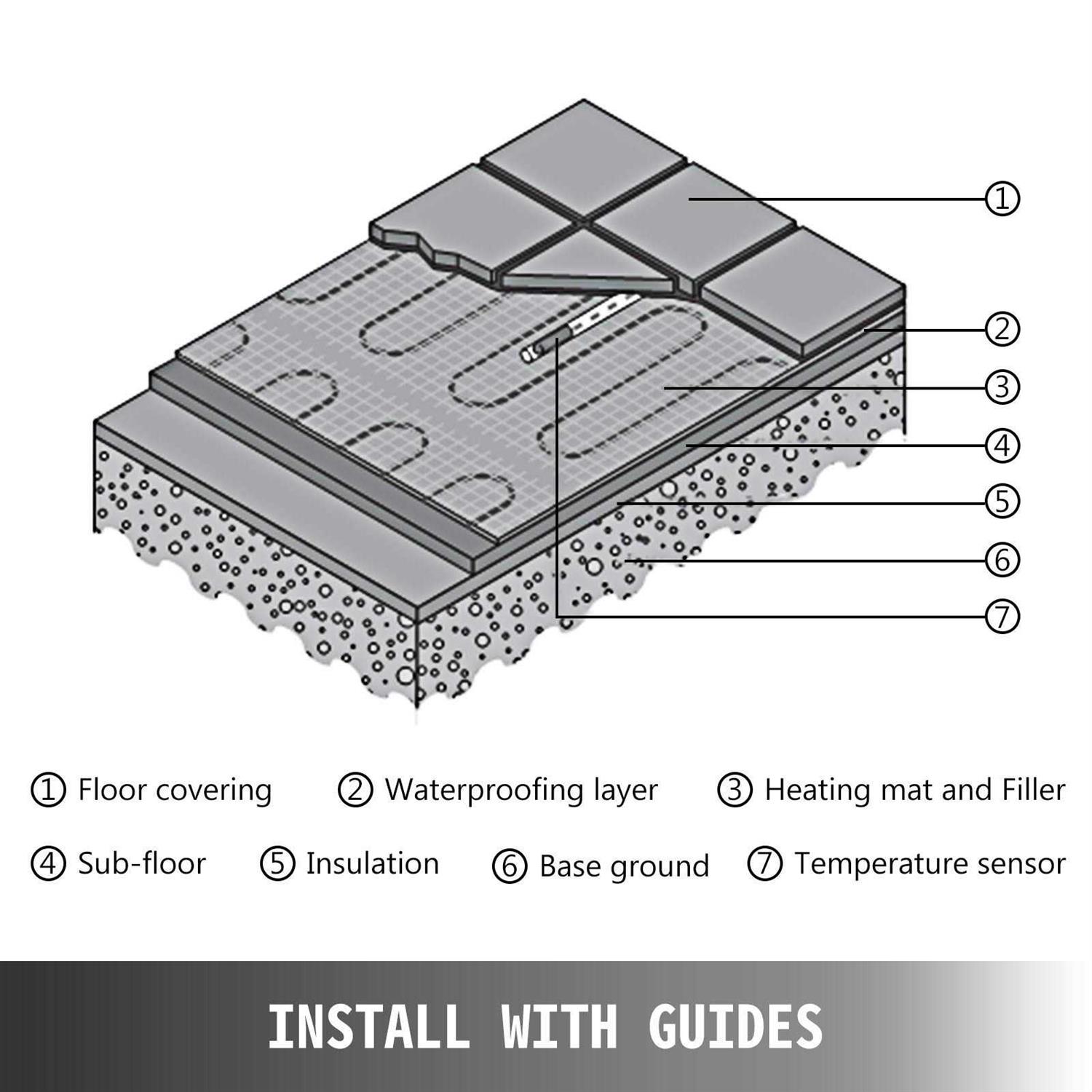 VEVOR 90 Sqft Electric Tile Radiant Warm Floor Heating Mat Kit Hotel Settable Ceramic DBCND90YCDKZQ0001V1 789458167380 90 sq.ft Floor Heating Mat This is an industrial-level floor heating mat used for floor warming in the living space especially in the winter or cold areas. It is easy to install and safe on use with thermostat temperature sensor and an alarm. Our floor heating mat has passed tests of UL CE VDE RoHS. Better than those regular products on the market. High-Quality Produc…