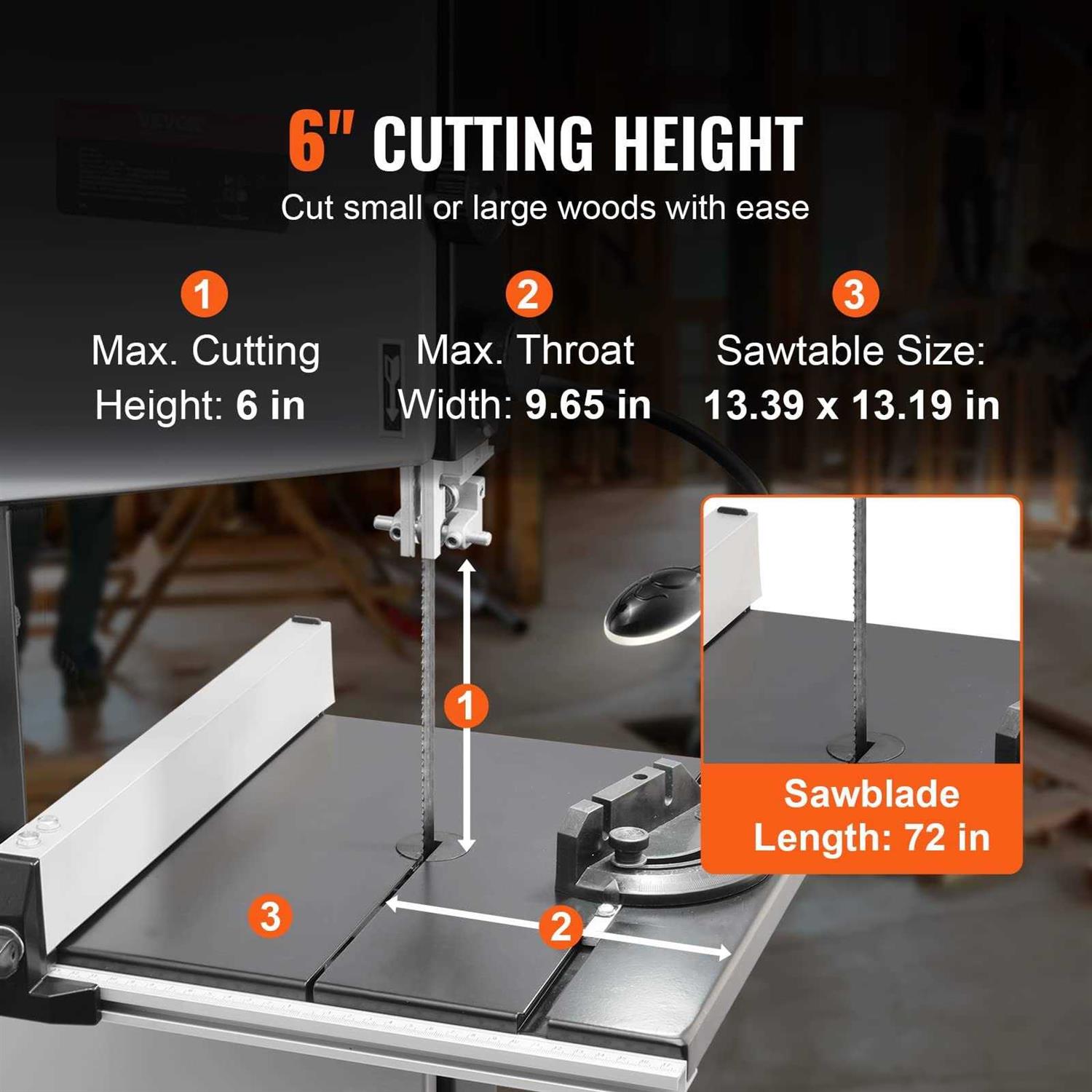 Impeccable Cutting Proficiency: Are you ready to cut into an unbelievable experience? The woodworking bandsaw can cut a variety of materials, such as wood, metal, copper, aluminum, plastic, and more, with a maximum cutting height of 6 inches. Max. Throat Width: 9.65 in / 245 mm, Sawblade Length: 72.13 in / 1832 mm, Max.Sawblade Speed: 890 m/min±10%. Two-speed Adjustable: The benchtop band saw comes with a high-performance motor that can deliver a powerful 1/2 HP 370W output while providing overheat protection for added security. The benchtop band saw features an 1100 RPM maximum speed and 560 RPM minimum speed, accommodating their specific needs. Multi-angle Cutting: The wood bandsaw features a tilting table that can be adjusted from 0 to 45°, allowing for more flexibility when cutting. The sawtable size is 13.39 x 13.19 in, made of Q235 steel for added strength and durability. By tilting the table 45 degrees to the right, you can easily cut bevels with precision and ease. Optimized Light Position: It is designed with your everyday needs in mind. The work light’s position is flexible and easy to operate, so you can adjust it to illuminate specific work areas without worrying about any shadows or dark spots, allowing you to work with precision effortlessly. Save Space in No Time: The tabletop bandsaw is equipped with a stand that raises the machine to a comfortable height for easier use. It also includes storage space, making it convenient for you to store your tools and keep them within reach. Connect a dust collector to the saw to keep your jobsite clean.