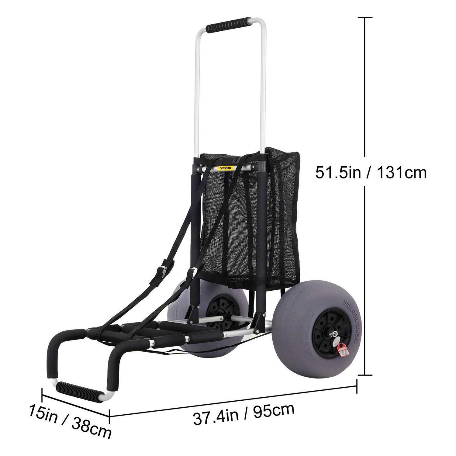VEVOR Beach Cart for Sand, 23 inch x 15 inch Cargo Deck, 13 inch TPU Balloon Wheels, 165lbs Loading