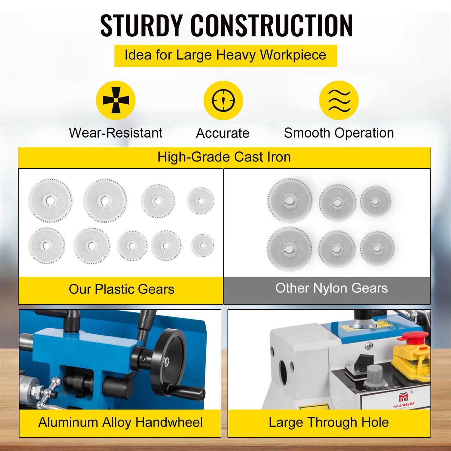 - Mini Metal Lathe 550w 7″”x14″” Precision With Lamp Nylon Gears Infinitely Variable