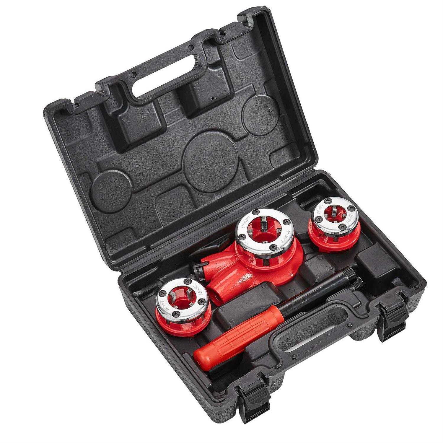 - 3 Threading Dies: 1/2″ NPT, 3/4″ NPT, 1″ NPT.