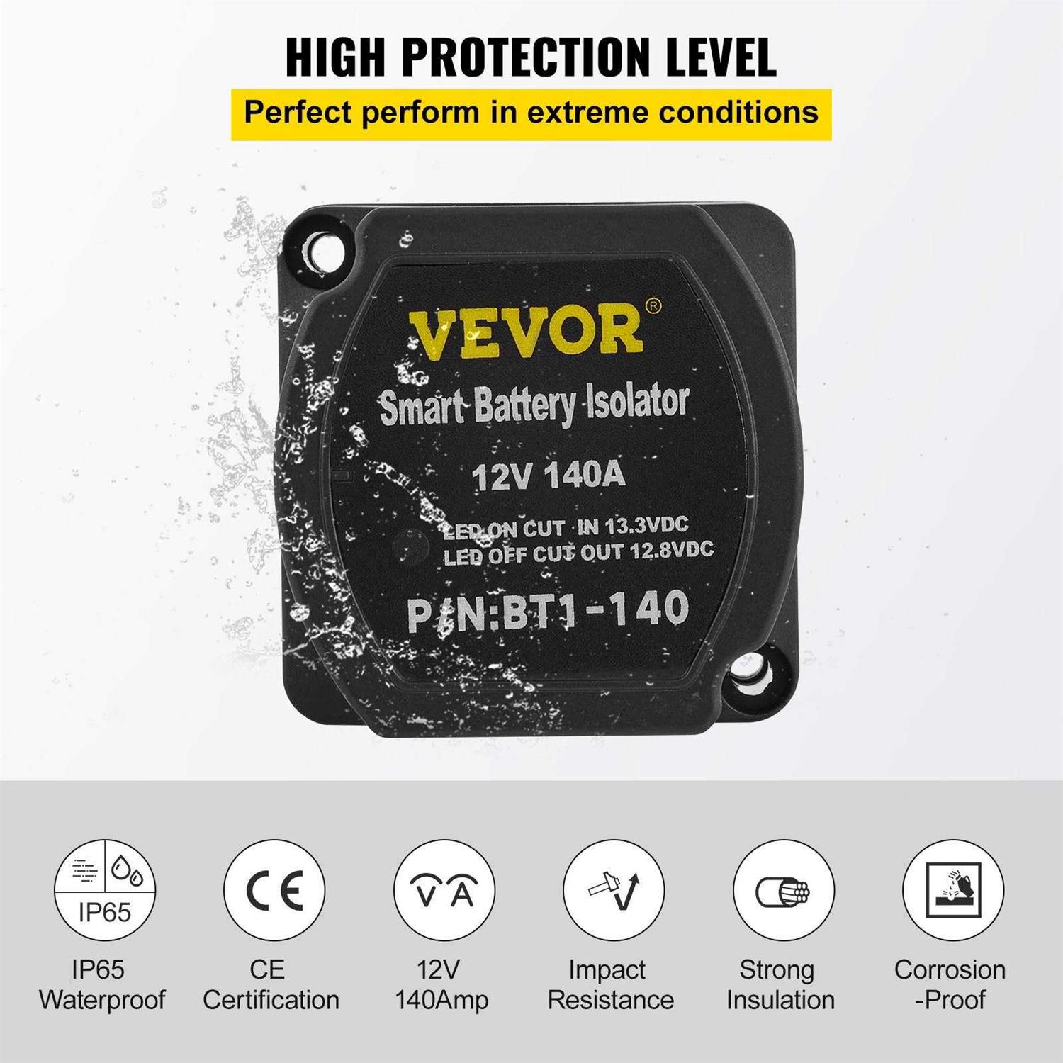 VEVOR Split Charge Relay Kit 6mtr 12V Automatic Dual Battery Isolator Kit with 140Amp Voltage Sense Relay VSR Compatible with RV Marine Car Vehicle