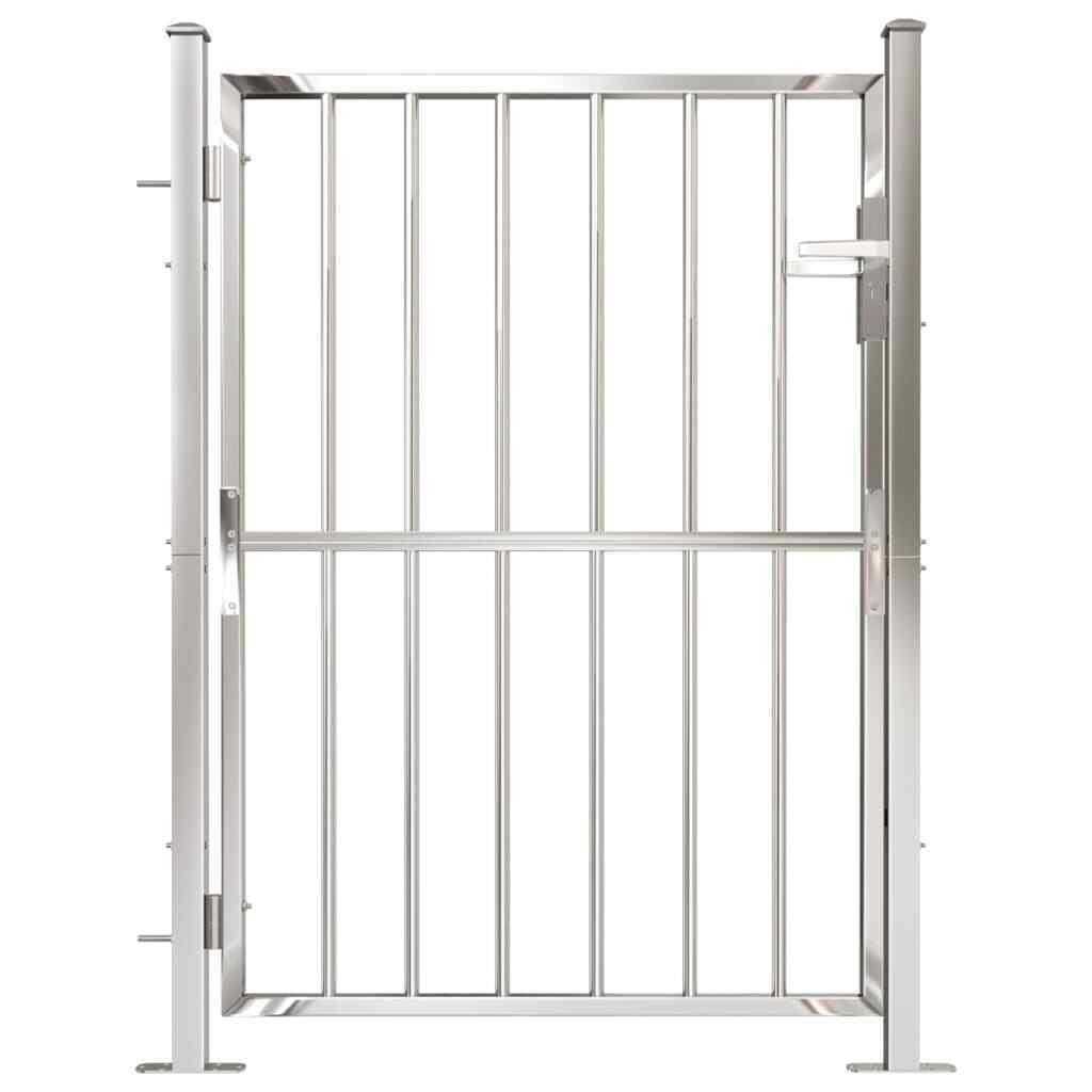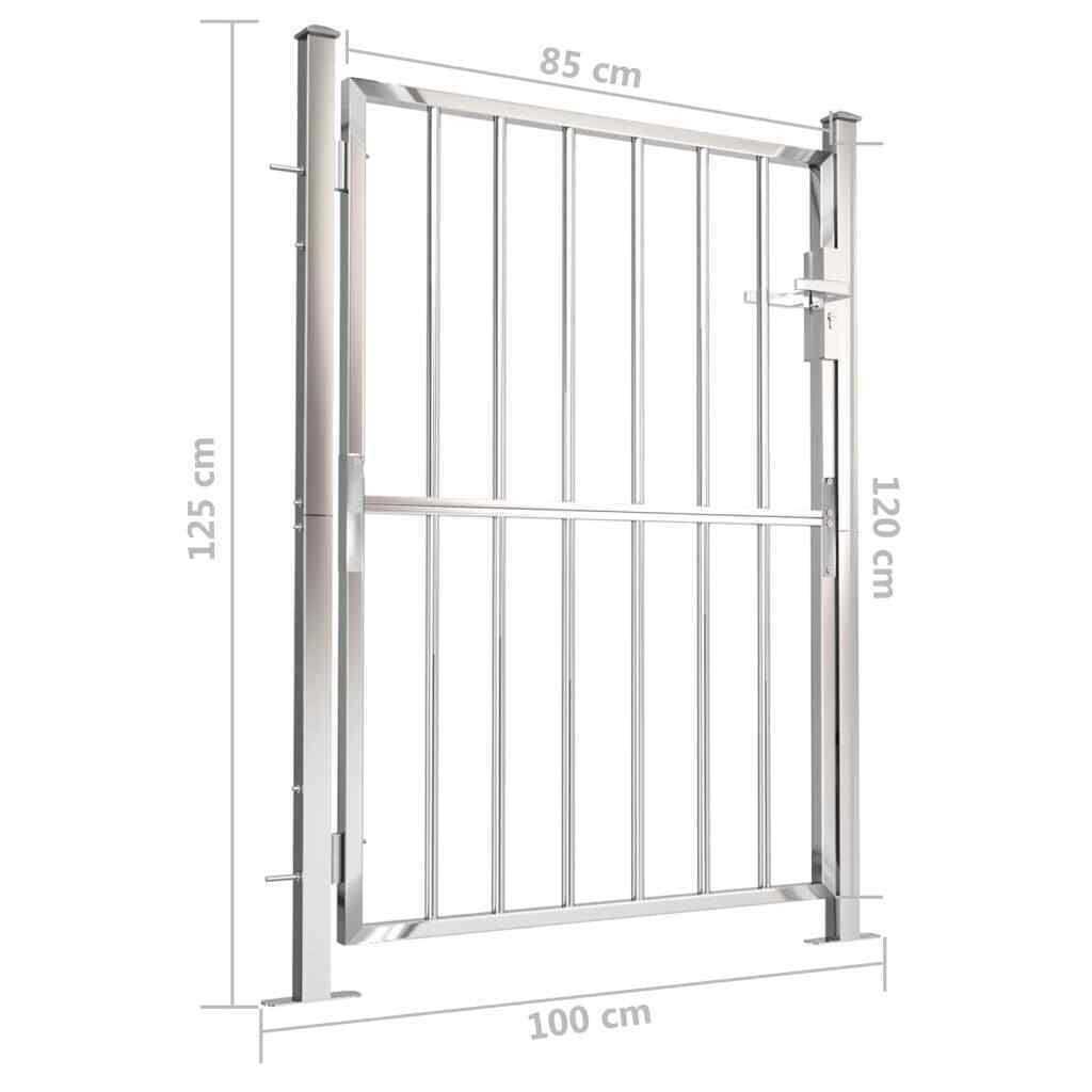 Garden Gate 100×125 cm Stainless Steel This garden gate gives you a contemporarily styled, functional entryway to seclude your garden from the outside world. The fence gate is highly stable and durable and forms a practical security barrier for your garden, patio or terrace.The outdoor gate is made of heavy-duty stainless steel, making it rust-resistant and corrosion-resistant. It also comes with sturdy hinges for easy installation. This garden barrier is equipped with a heavy-duty locking system and three matching keys. The mounting accessories to assemble the patio gate to the ground are included.