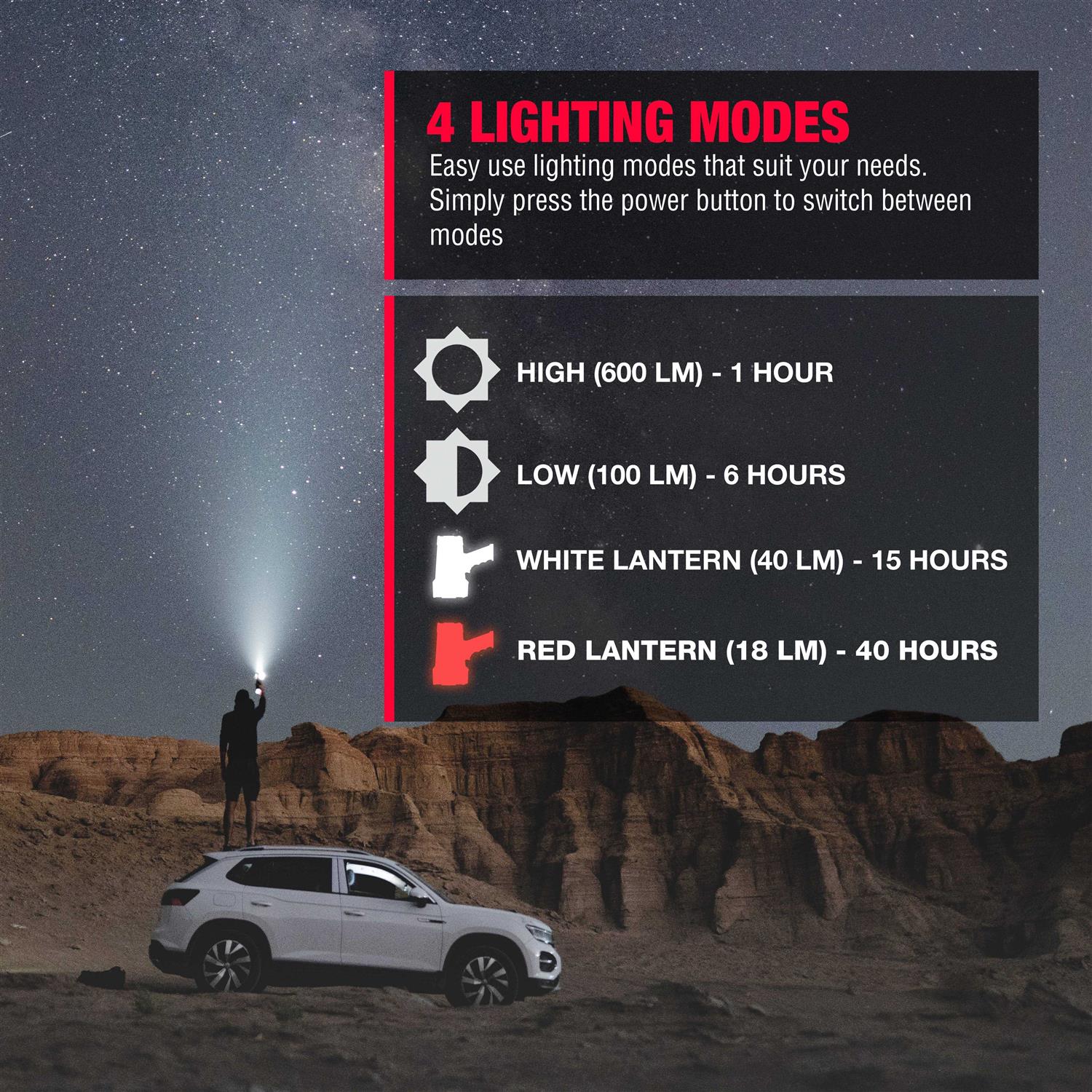 - High & Low Beam LED Spotlight 600 Lumens and 100 Lumens