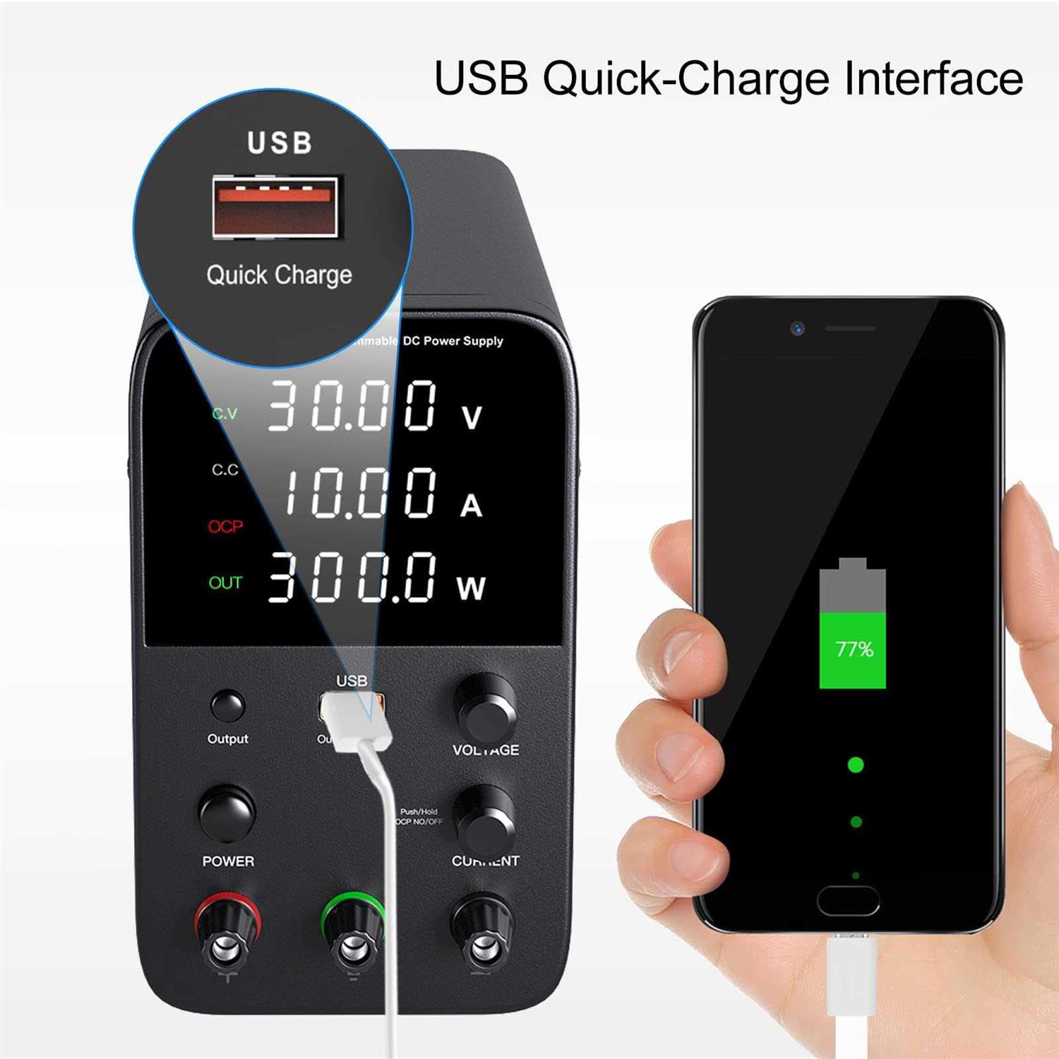 Wanptek DC Power Supply Variable Bench Power Supply with Output Switch Short Circuit Alarm Adjustable Power Supply 30V 10A with Precise Encoder Adjust