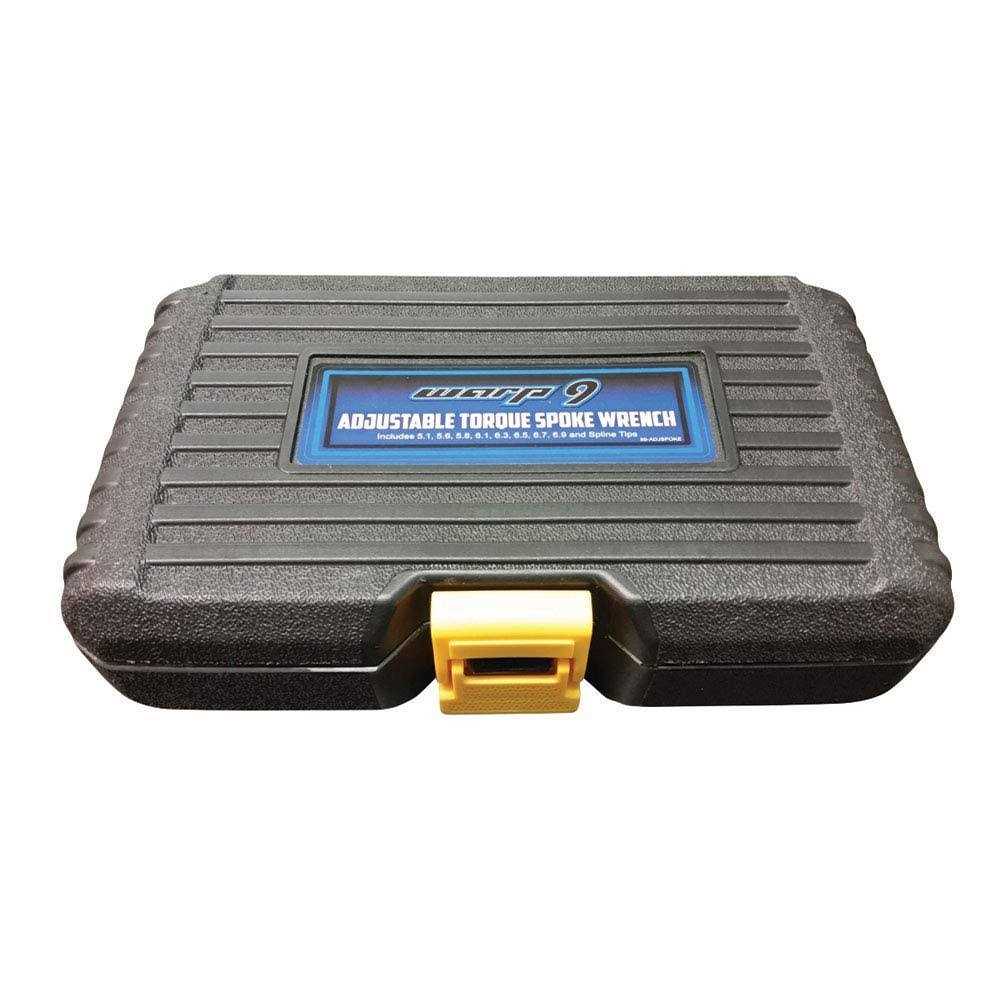 Warp 9 Adjustable Torque Spoke Wrench Kit Adjustable torque spoke wrench kitTorque wrench handle has rubber rim protectorIncludes torque wrench handle, standard handle and 5.1, 5.6, 5.8, 6.1, 6.3, 6.5, 6.7, 6.9 and spline tips in case Product Features A Professional Adjustable Spoke torque Wrench kit. Torque wrench handle has rubber rim protector. Includes case. Includes Tips 5.1, 5.6, 5.8, 6.1, 6.3, 6.5, 6.7, 6.9 and Spline drive. Includes a standard handle for those tough disassembly jobs.