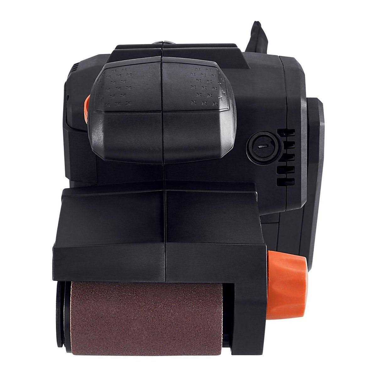 Variable Speed Belt Sander has six different belt speeds for a wide variety of sanding jobs. A quick tension-release makes belt changes easy. The guard prevents cord kinking and keeps it away from the belt. An efficient dust collection system keeps the job area tidy.