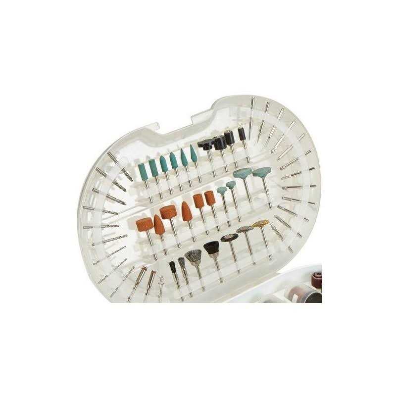 This set of rotary tool accessories has everything you need to cut, carve, grind, sand and polish wood and metal! Each accessory is designed to fit most high speed rotary tools. The rotary tool accessory set includes a handy display case for easy identification and organization. Craftsmen and hobbyists alike can make the most out of their rotary tool with these accessories!