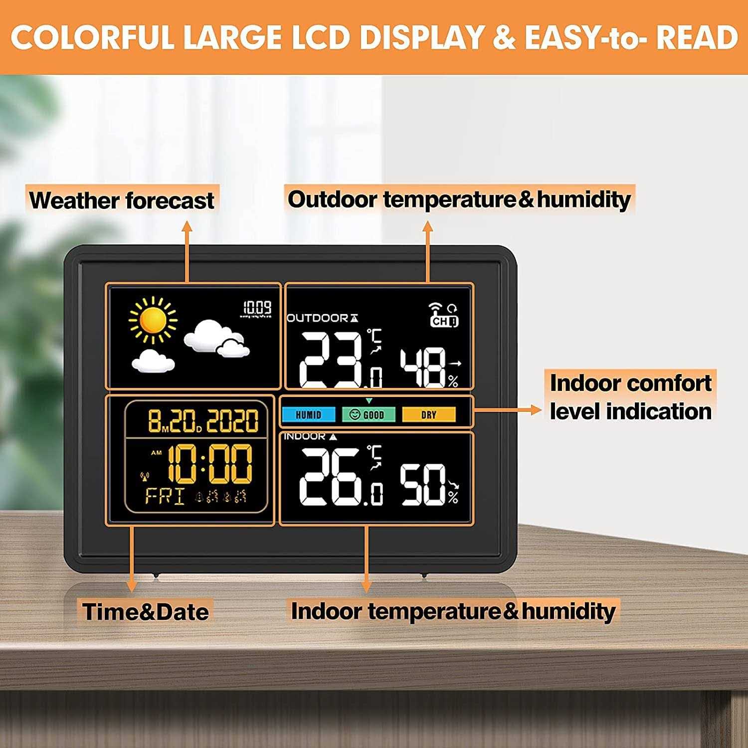 Weather Station Wireless Home Thermometer Outdoor Indoor Colorful Display Hygrometer with 5 Level Adjustable Backlight Humidity Monitor Weather
