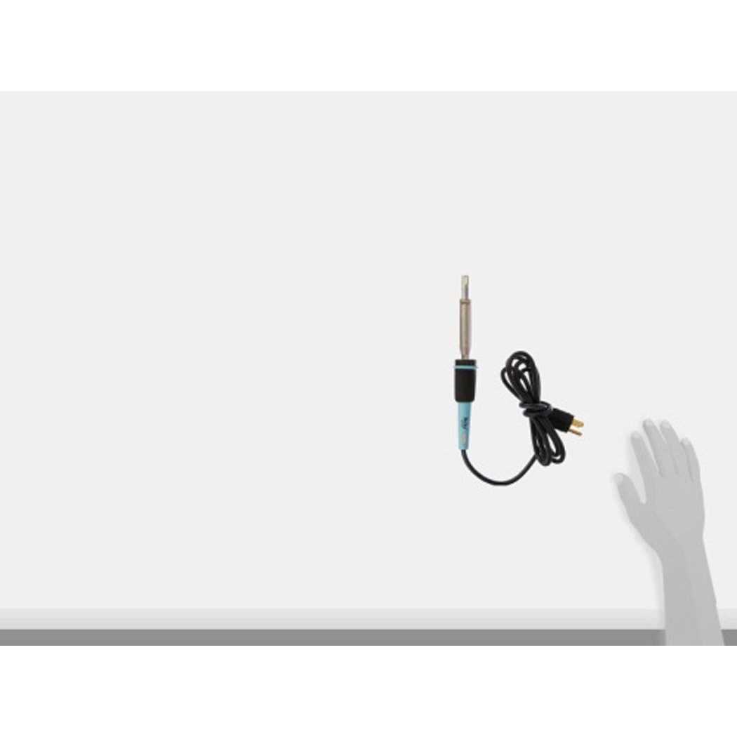 This professional grade plug-in 100 watt soldering iron uses industry leading Weller closed-loop method of controlling maximum tip temperature to protect yourself and your workstation from over temperature. It is UL and cUL listed and automatically maintains a constant tip temperature without having to make any adjustments. It’s temperature is controlled by the inserted tip. A high quality 3/8 inch iron clad tip at 700 Fahrenheit is included (part number CT6F7). 600 F tip (part number CT6F6) and 800 tip (part number CT6F8) are sold separately. Standard heat up time for the 700 degree Fahrenheit tip is a quick 110 seconds with its nichrome wound heating element allowing you to get more work done in a shorter amount of time. The soldering iron uses a portable line voltage iron meaning a base is not required, allowing you more freedom.